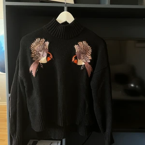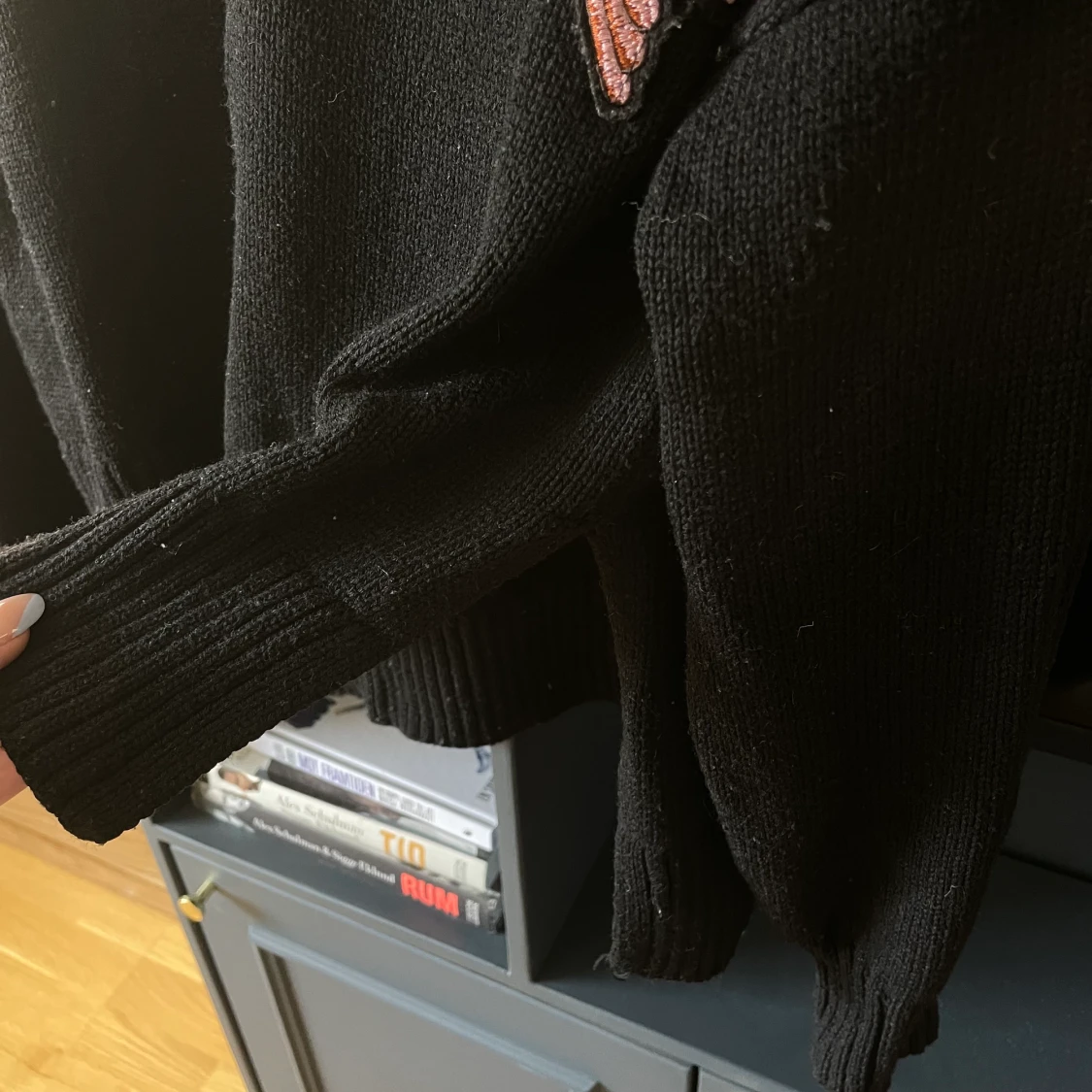 Tjockare stickad tröja med slits i sidorna och halv polo. Superskön men aldrig använd