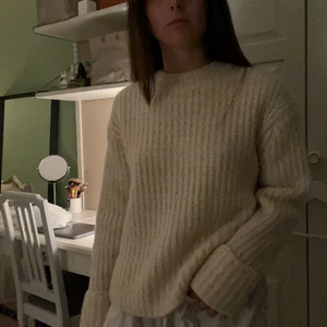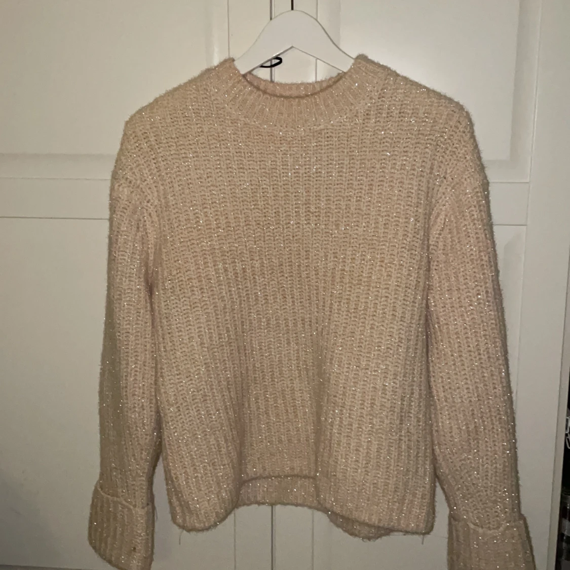 Jättefin ljusrosa glittrig stickad tröja från H&M men köpt här på plick. Aldrig använd endast provad. Köparen står för frakt. Hör av er för fler bilder elelr frågor 💕