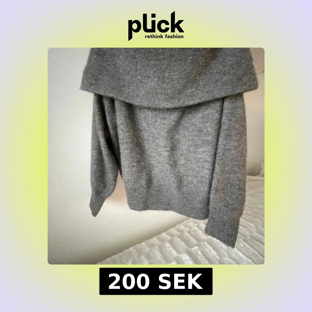 Grå stickad offshoulder tröja från H&M, knappt använd, skriv privat för fler bilder🩷storlek S passar xs