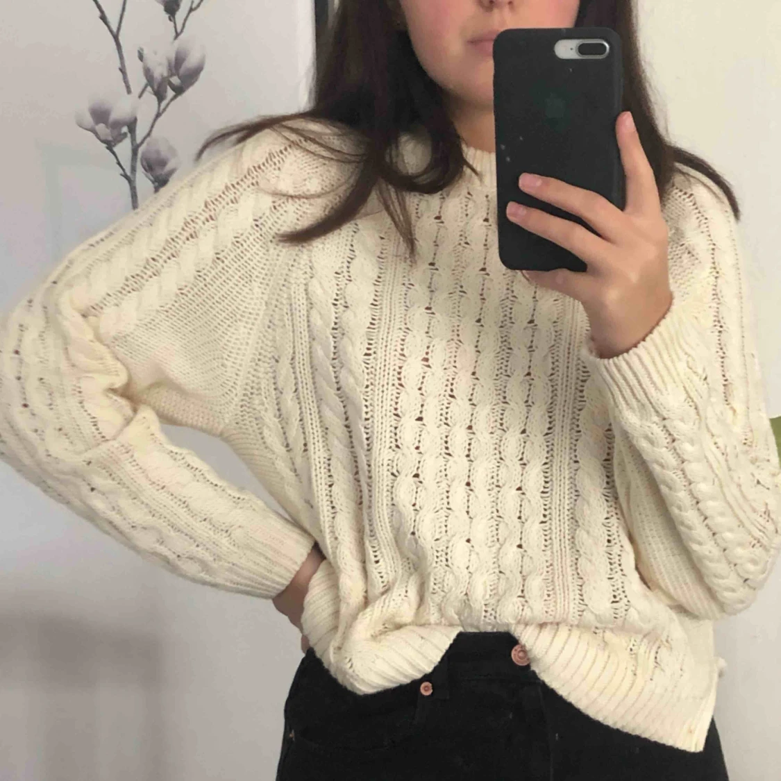 Vit stickad tröja från H&M! Dm vid intresse 🥰