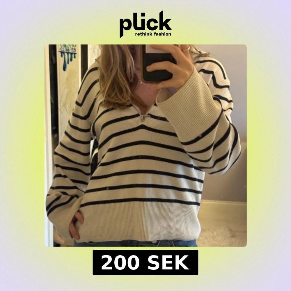 Randig Svartvit Half-Zip Från Kappahl. Jättebra skick och kan bäras på flera sätt, köpt för cirka 500kr för 2 år sedan. Passar perfekt på mig som bär S men passar troligen från XS-M!🩷