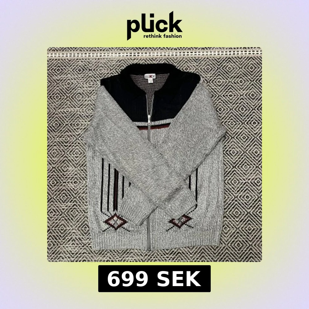 Riktig fet unik stickad kofta / zip tröja med krage. Passar perfekt över en t shirt och sitter riktigt snyggt. Bra skick. Storlek 50 vilket motsvarar cirka M. Skriv vid minsta intresse, pris kan alltid diskuteras vid smidig affär😀