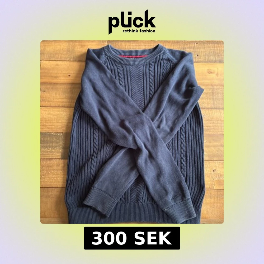 Mörkblå stickad tröja från Hampton Republic med klassiskt flätmönster framtill. Tröjan har rund halsringning, ribbade muddar och långärmad passform. Perfekt för dig som gillar en stilren och tidlös look.