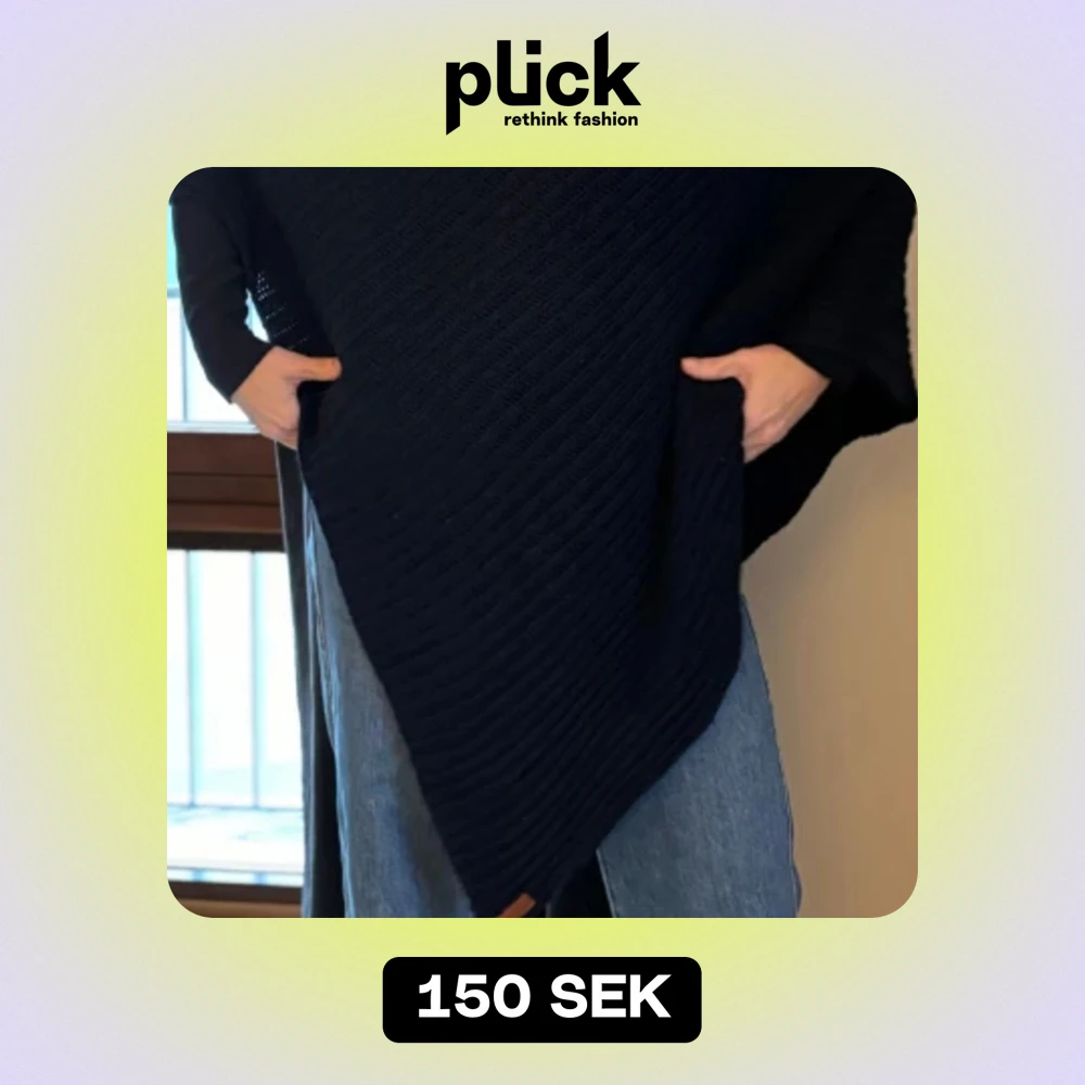 Handstickade poncho från Deeliciois. Sparsamt använd. Onesize men tänk medium. Inte stickig utan skön att slänga på sig. Mörkblå, nypris ca 1000kr.