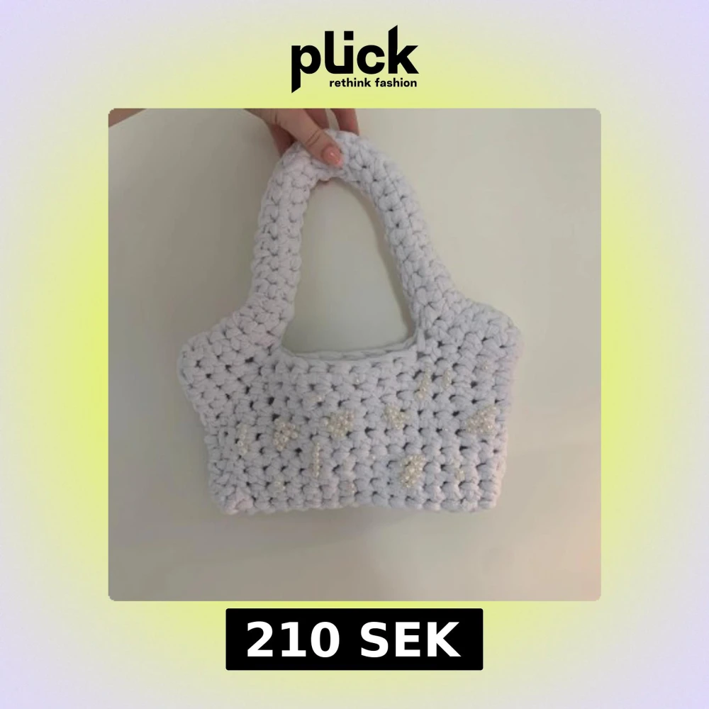 Superfin handvirkad axelväska i vit färg med chunky struktur. Väskan är dekorerad med pärlor på framsidan för en extra söt touch. Perfekt storlek för mobilen och det viktigaste. Unik och trendig accessoar som lyfter din outfit.