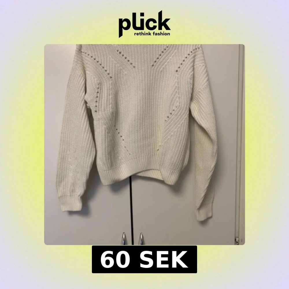 Säljer en vit stickad tröja med snygga håldetaljer och strukturstickning. Tröjan har långärmad passform och ribbade muddar vid ärmslut och nederkant. Perfekt för lager på lager under kyliga dagar.
