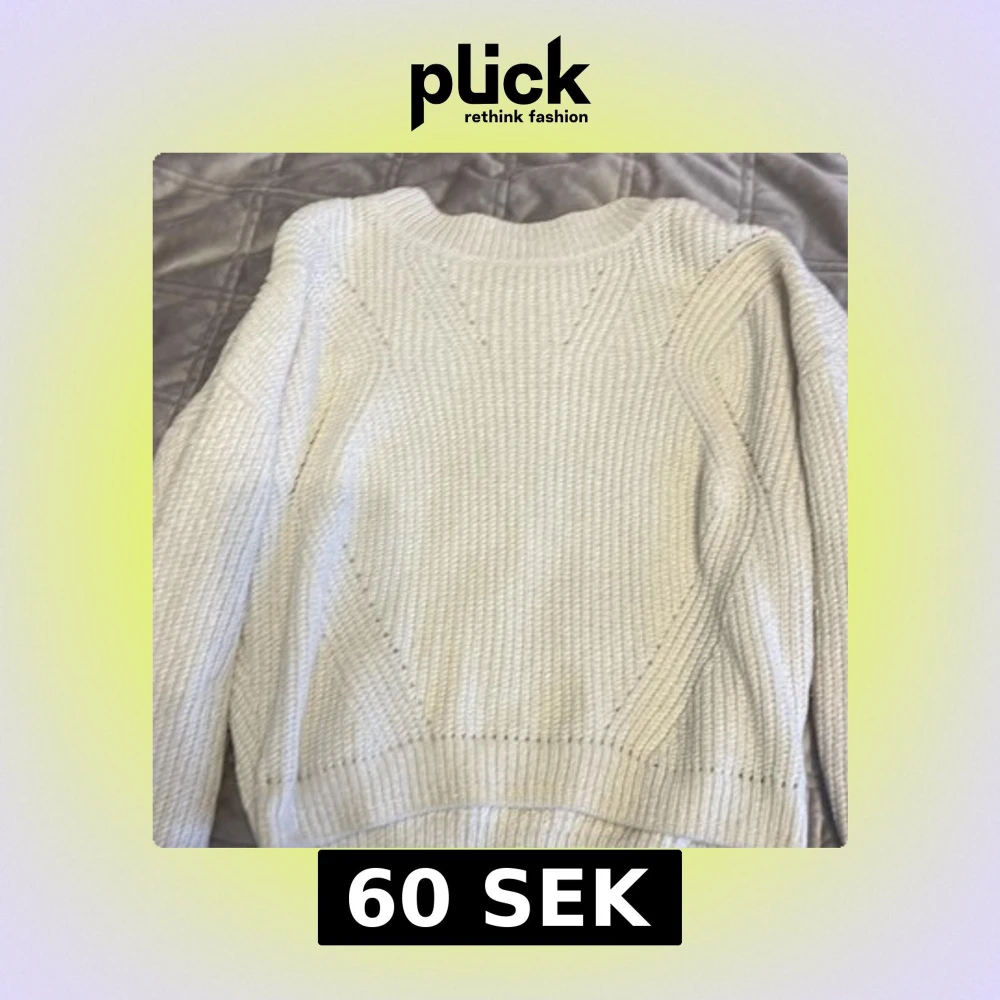 Säljer en stilren vit stickad tröja från H&M. Tröjan har en klassisk design med rund hals och långa ärmar. Perfekt för kyligare dagar och enkel att matcha med olika outfits. Hör av dig vid intresse! 🤍
