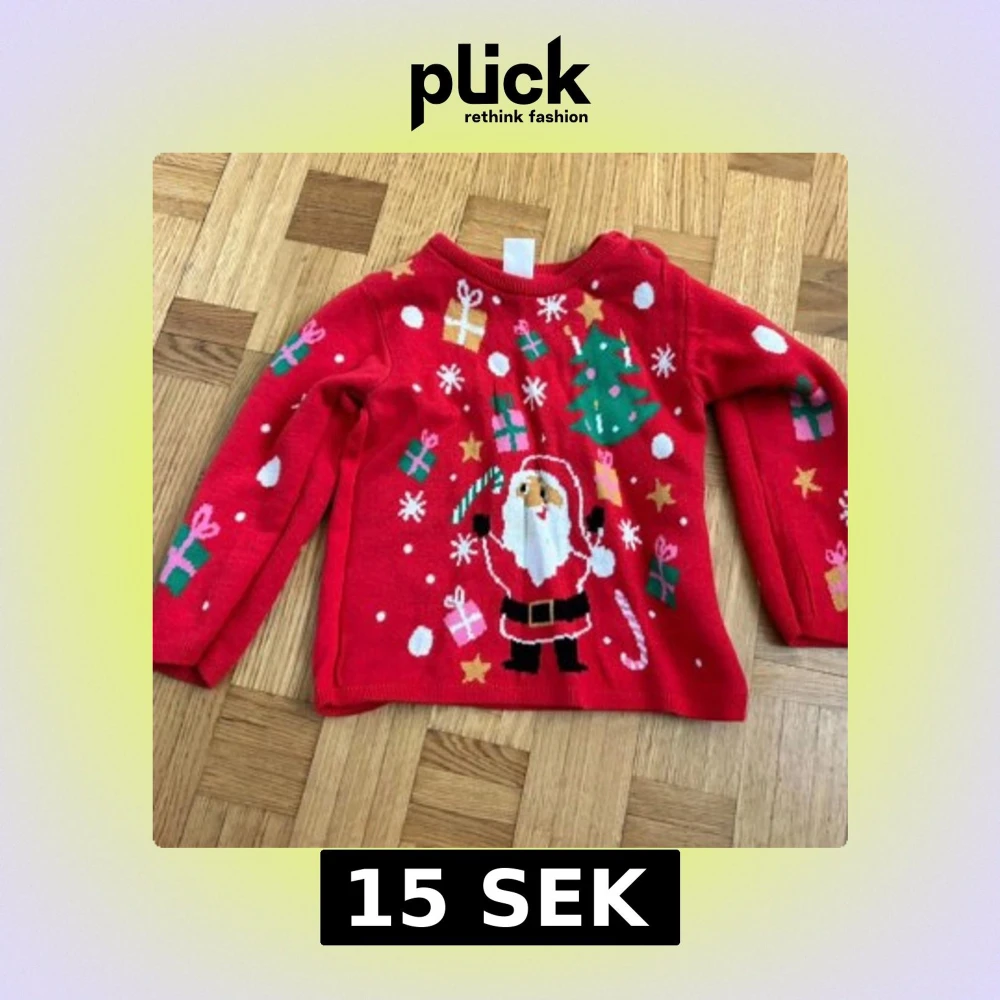 Supergullig röd jultröja från H&M med tomte, julgran, paket och snöflingor. Tröjan har långa ärmar och är stickad i mjukt material, perfekt för julens alla tillfällen. Färgglada detaljer i grönt, vitt, rosa och gult gör den extra festlig.