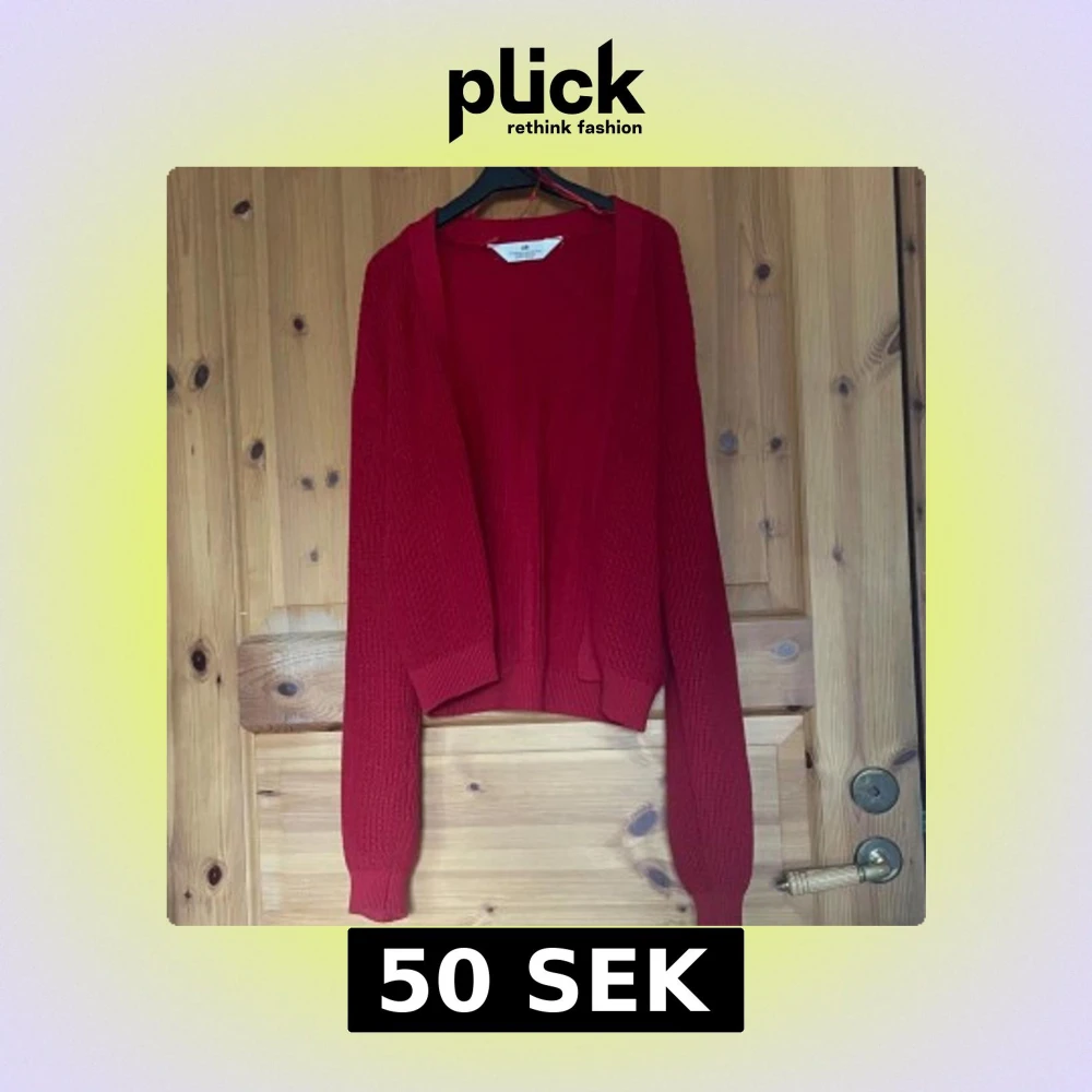 Säljer en mysig röd stickad kofta med långa ärmar. Perfekt för kyliga dagar och enkel att matcha med olika outfits. Koftan har en öppen design utan knappar.