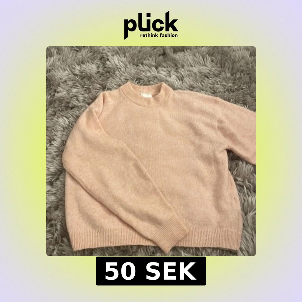 Mysig rosa stickad tröja från H&M med rund hals och långa ärmar. Tröjan har ribbade muddar vid ärmslut och nederkant. Blir inte alls nopprig efter tvätt utan håller sig fin