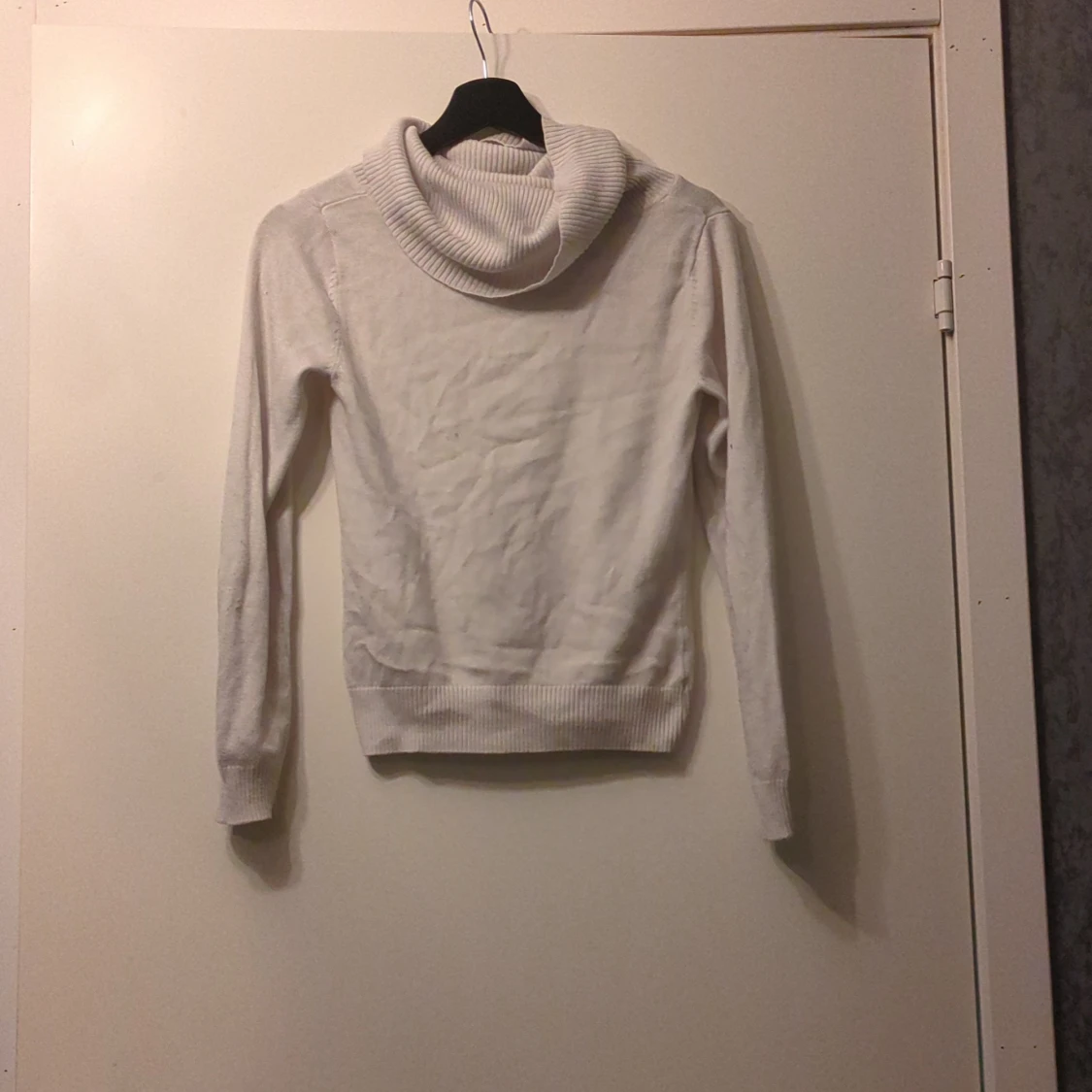 Vit, fin turtleneck tröja som är perfekt för vintern.