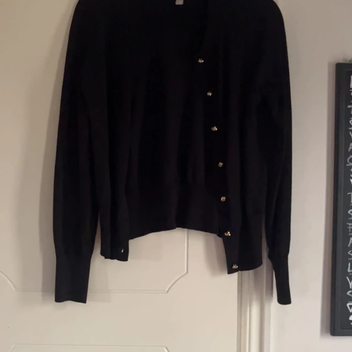 Säljer denna as fina svarta kofta med guld knappar💕 Är ifrån Hm i strl XS men passar också S! Säljer för 129 + köpare står för frakt❣️