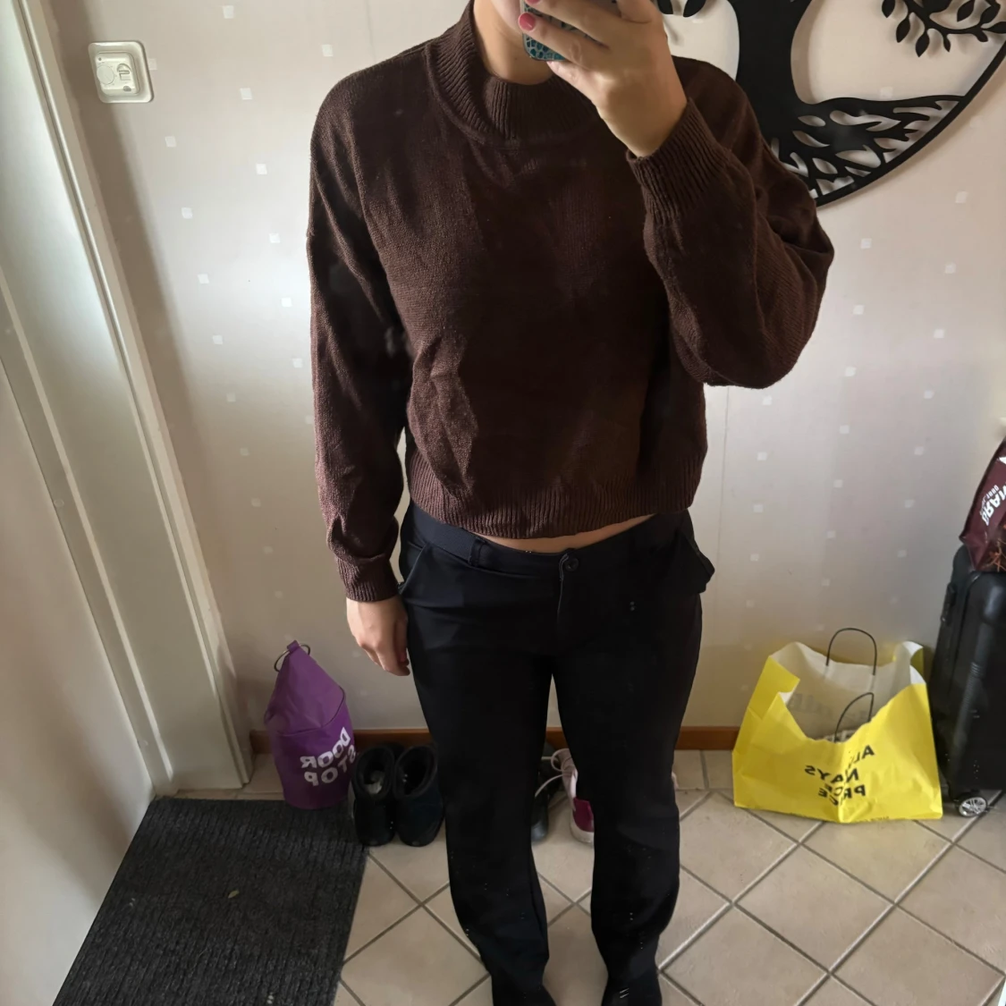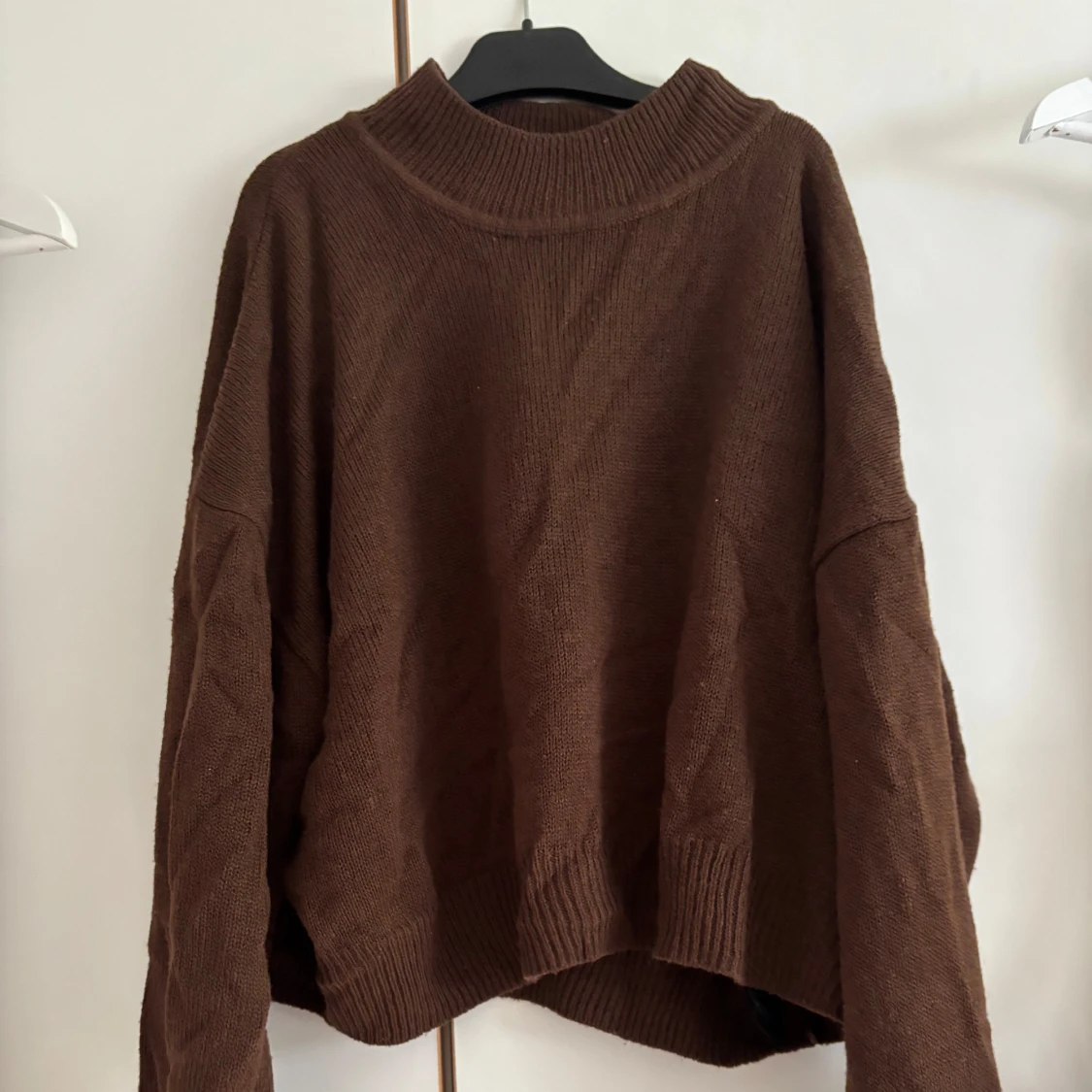 Brun stickad tröja från H&M, fint skick utöver att den är lite skrynklig 😇 Liten i storleken, passar mig som har S!