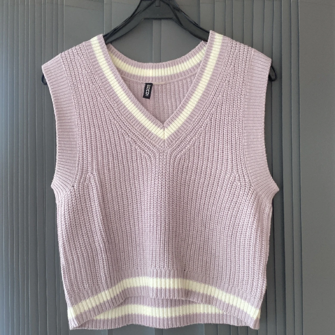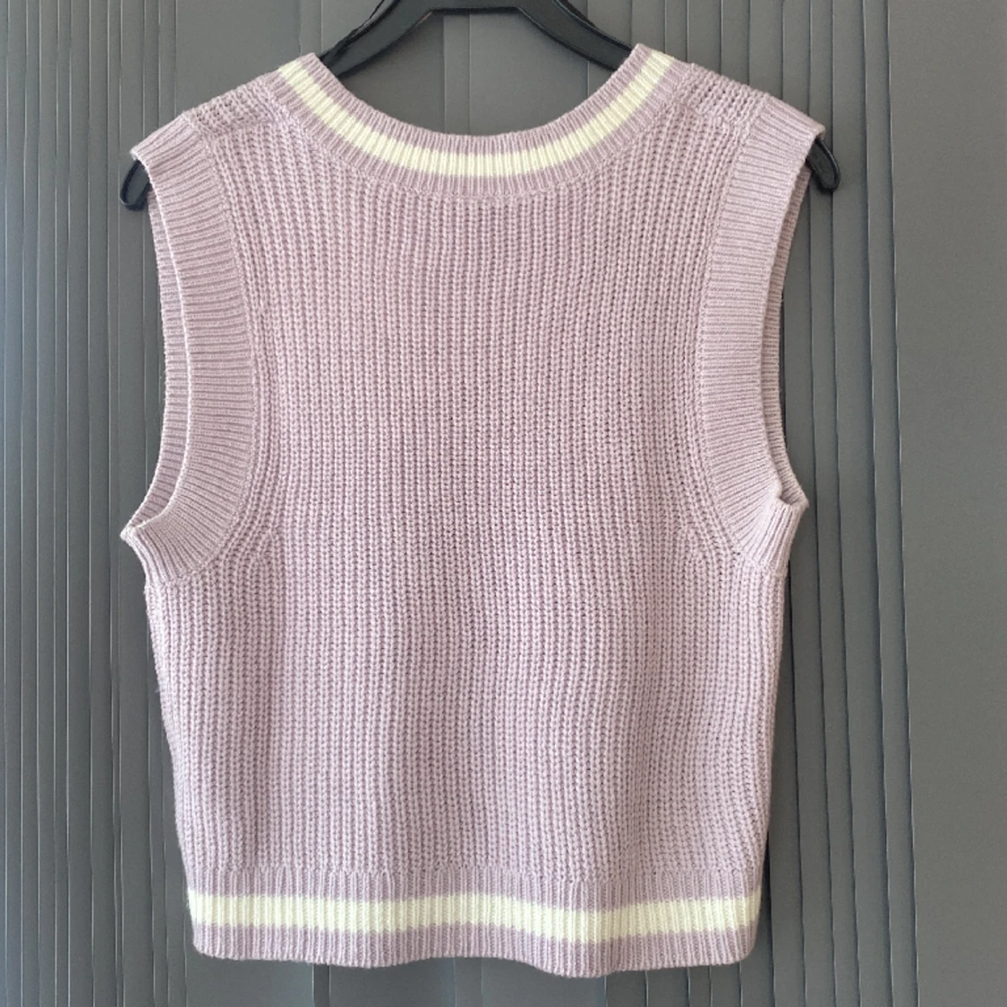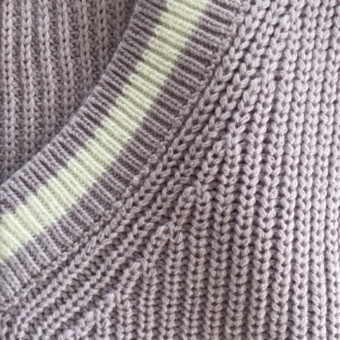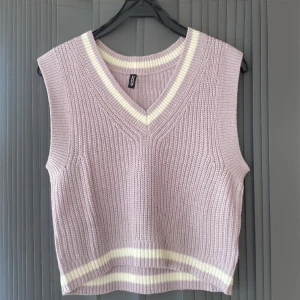 Ljuslila stickad väst som är nästintill aldrig använd. Har vita deltaljer och är även lite större i storlek.