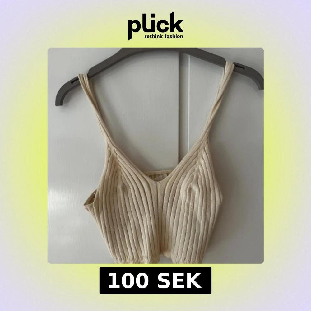 Säljer en beige ribbad linnetopp från H&M i storlek L. Toppen har smala axelband, croppad passform och är stickad i mjukt material. Perfekt för varma dagar eller som lager under en skjorta. Enkel och stilren design som är lätt att matcha.