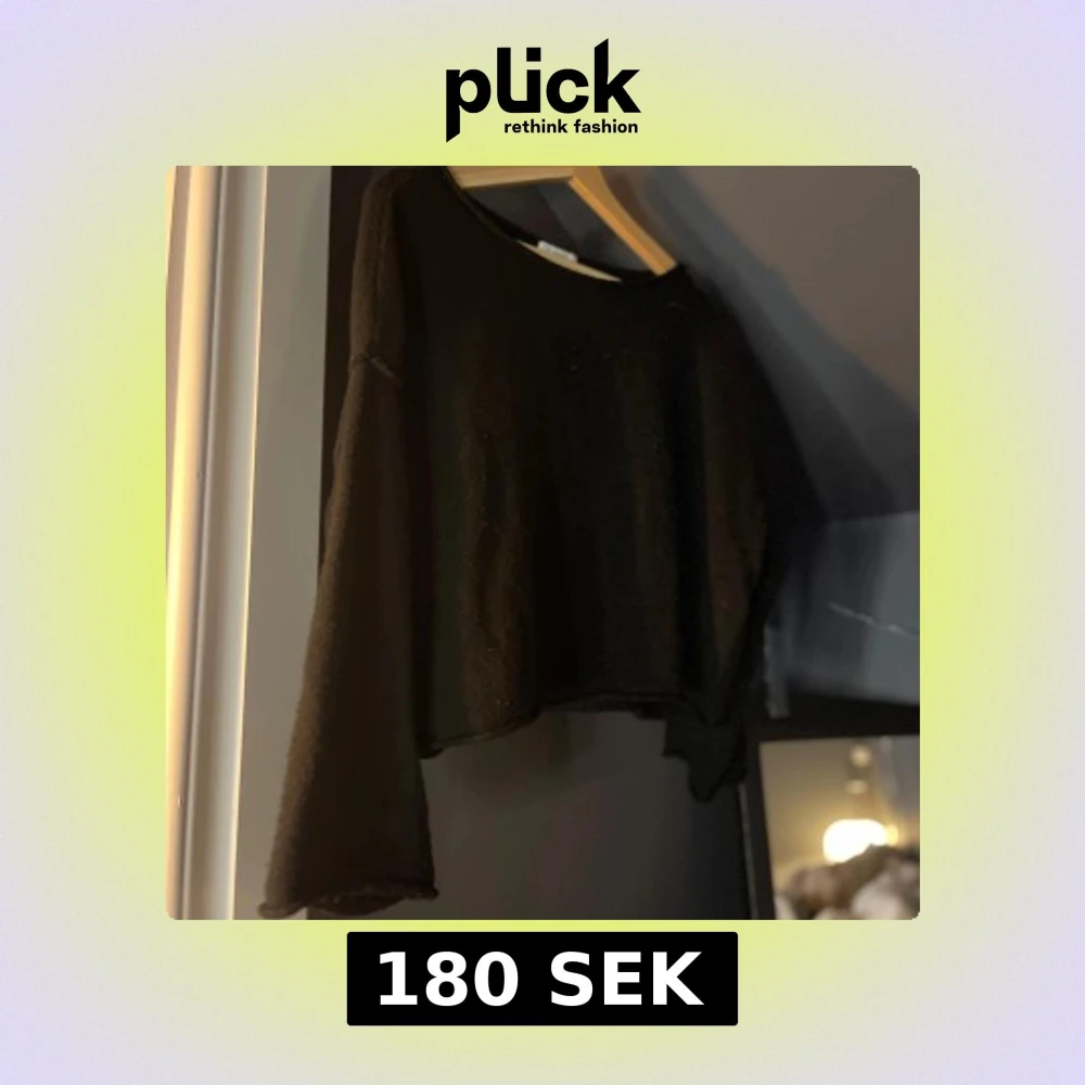 Svart croppad stickad tröja med vida, långa ärmar och enkel rund halsringning. Perfekt för lager-på-lager och ger en chill vibe till din outfit. Mjuk och skön känsla tack vare det stickade materialet.