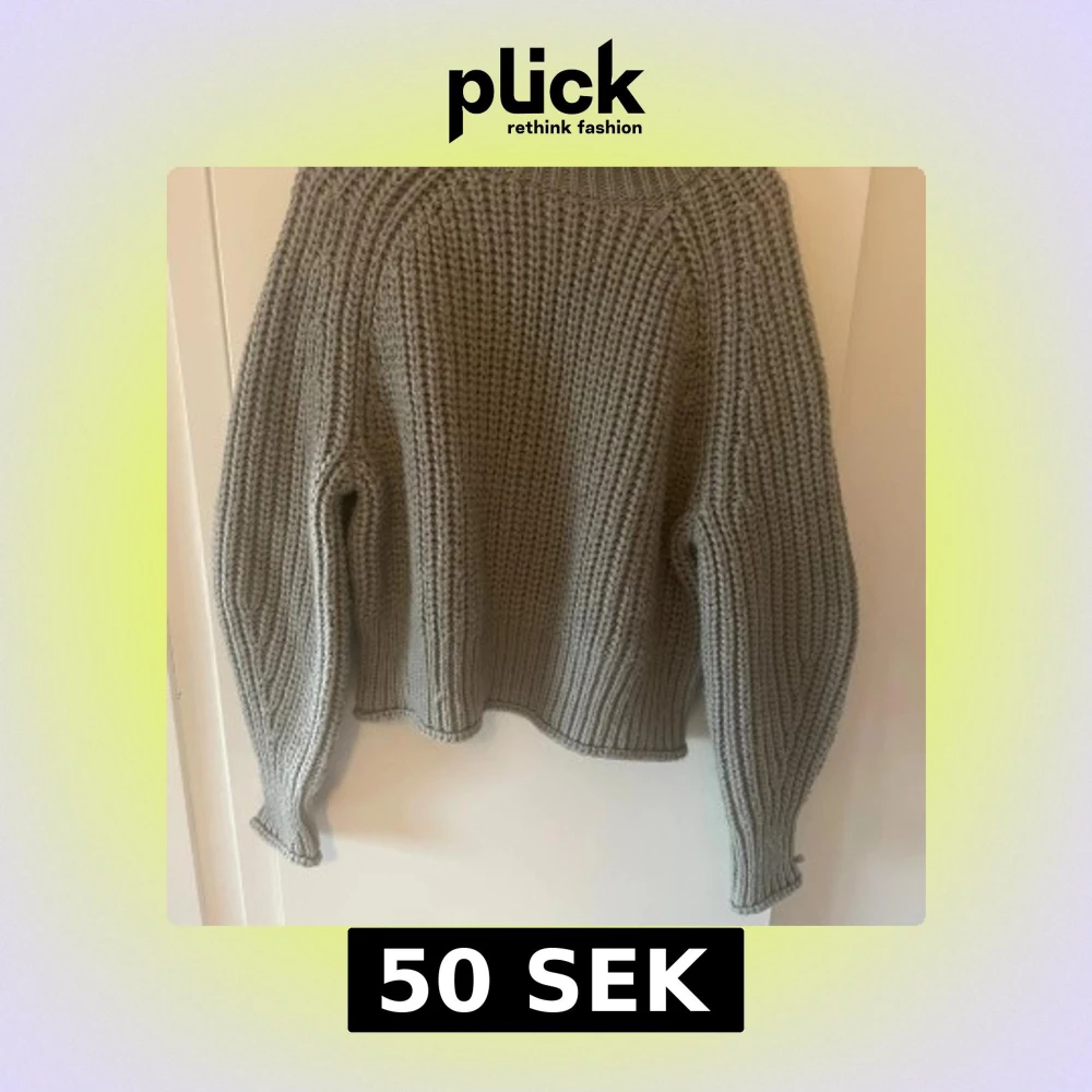 Säljer en chunky grå stickad tröja från H&M i storlek L. Tröjan har grov ribbstickning, rund hals och långa ärmar med breda muddar. Perfekt för att hålla sig varm och snygg under kyliga dagar. Enkel att styla med jeans eller kjol.