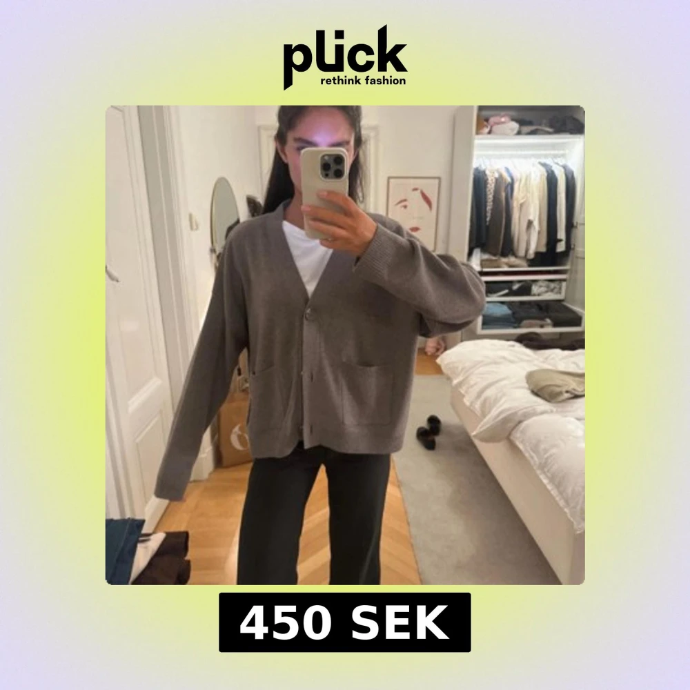 Mysig grå kofta från H&M i oversized modell med två stora fickor framtill och knäppning med knappar. Koftan är stickad och har långa ärmar samt ribbade muddar vid ärmslut och nederkant. Perfekt för lager-på-lager och chill dagar.