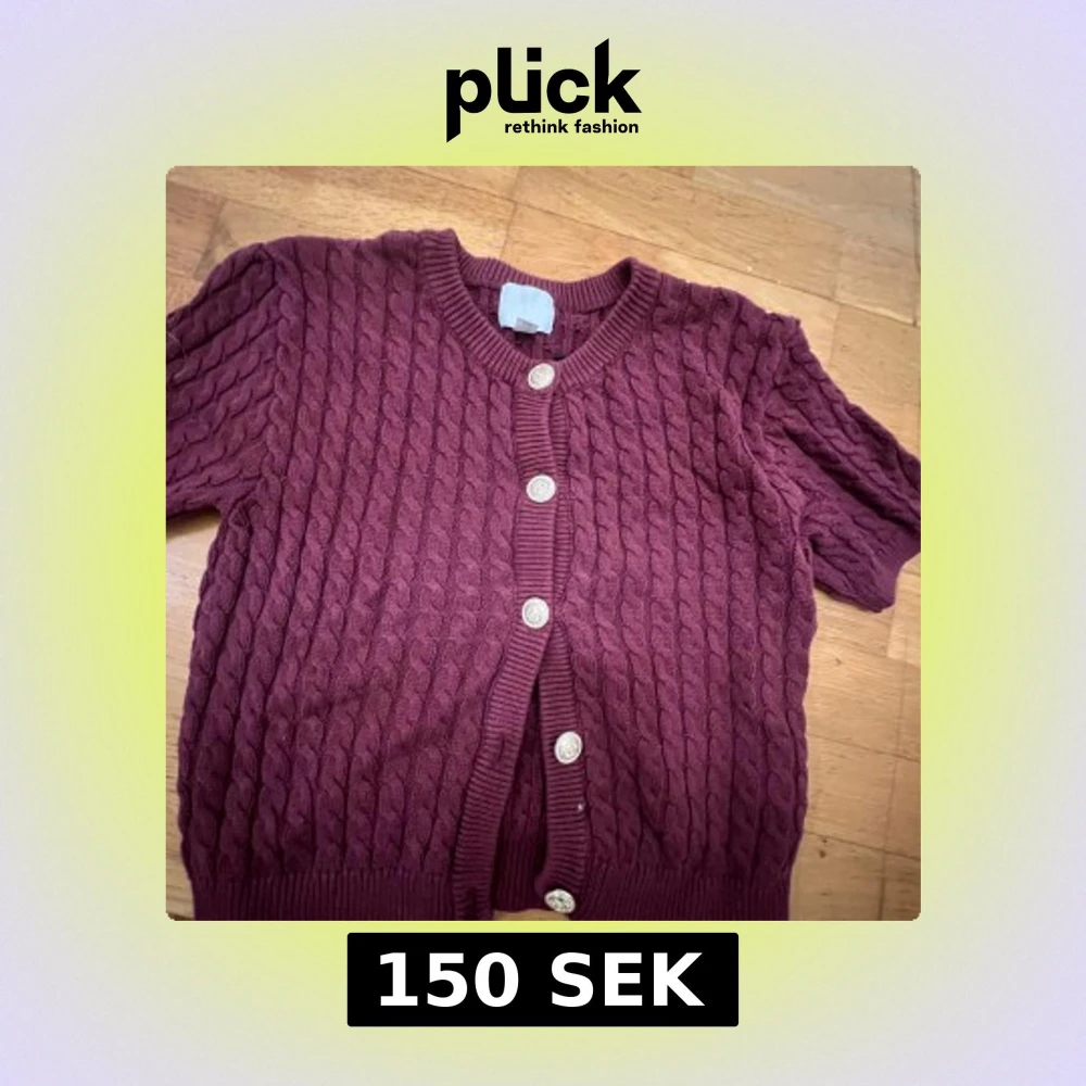 Säljer en vinröd kofta från H&M med flätstickat mönster och dekorativa knappar. Koftan har korta ärmar och ribbade kanter. Perfekt för en mysig höstlook. 🌟