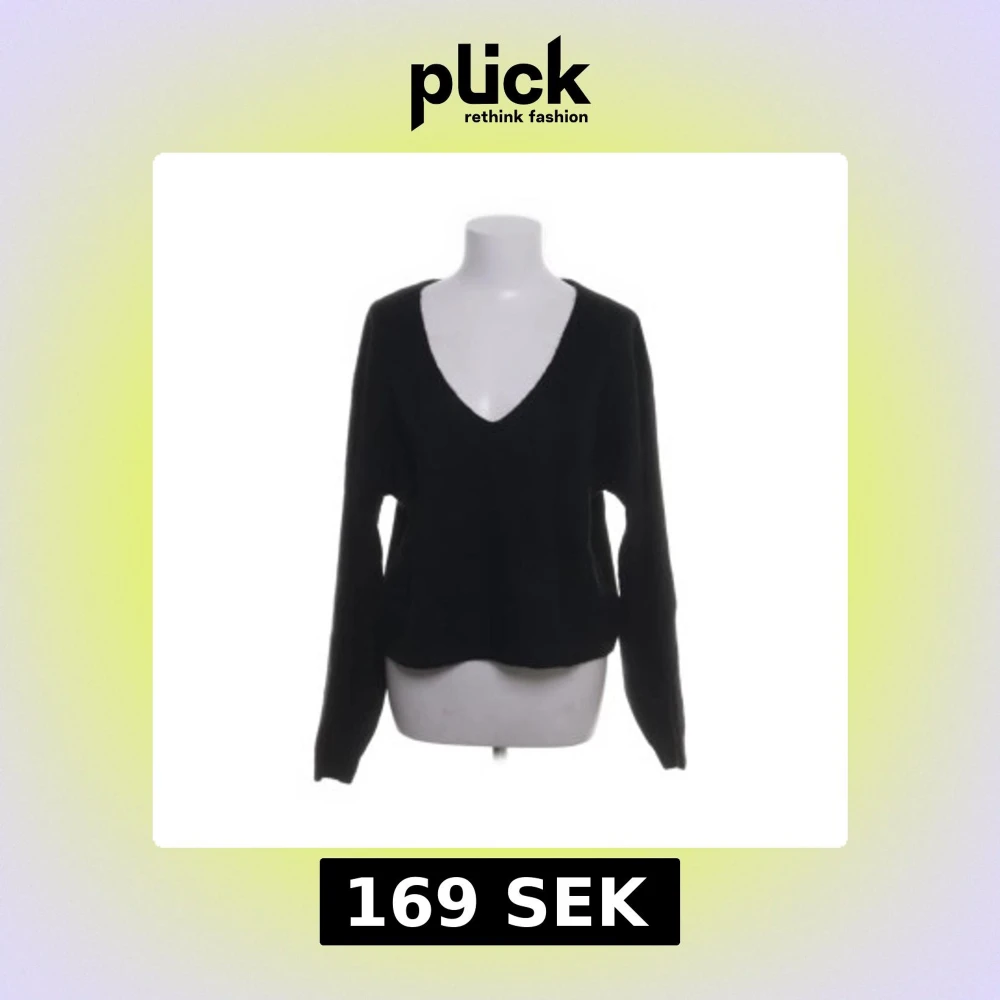 Svart stickad tröja från H&M i storlek M. Tröjan har en djup v-ringning och långa ärmar, perfekt för dig som gillar en enkel men snygg look. Mjuk och skön kvalitet som passar till många olika stilar.