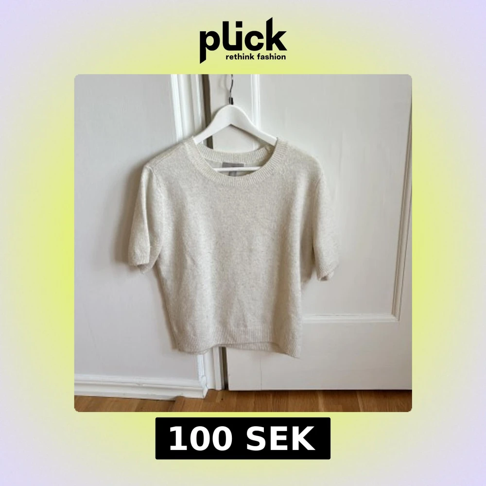 Säljer en stilren vit stickad tröja från H&M. Tröjan har korta ärmar och en rund halsringning. Den är väl använd så den är lite knottrig (bild 4&5)