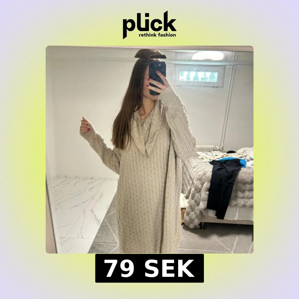 Mysig beige stickad klänning från H&M med oversized passform och lång ärm. Klänningen har ett snyggt stickat mönster och en bred, avslappnad krage. Perfekt för dig som gillar en chill och comfy stil under kyligare dagar. Passar bra till S och m också det blir en väldigt mysig oversized look ❤️