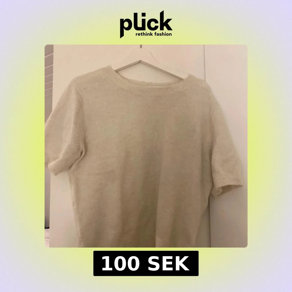 Säljer en enkel och stilren vit stickad tröja med korta ärmar.