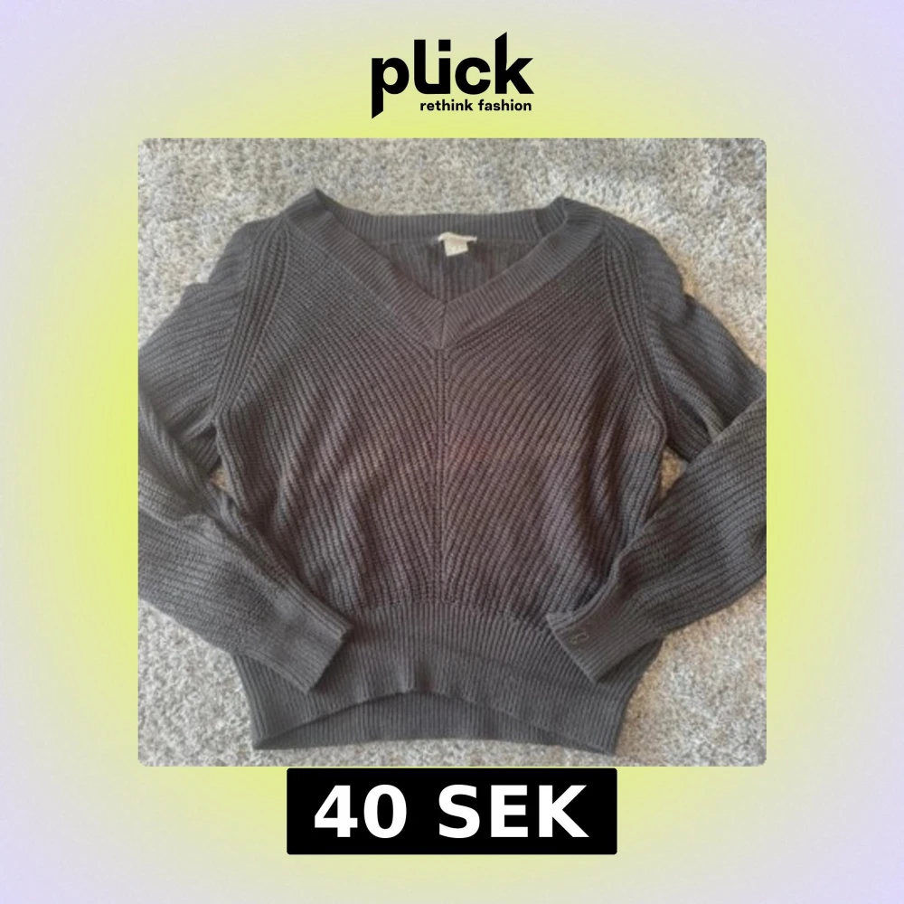Säljer en svart stickad tröja med v-ringning och lång ärm. Tröjan har en ribbad kant vid midjan och ärmarna, vilket ger en snygg passform. Perfekt för kyligare dagar och jätte enkel att matcha med olika outfits.