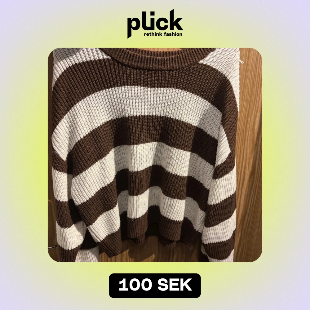 Säljer en supermysig stickad tröja i brunt och vitt med breda ränder. Perfekt för höst och vinter, den är både varm och stilren. Tröjan har en avslappnad passform och långa ärmar, vilket gör den idealisk för kyliga dagar. Ett måste i garderoben för den som älskar bekväma och snygga plagg!