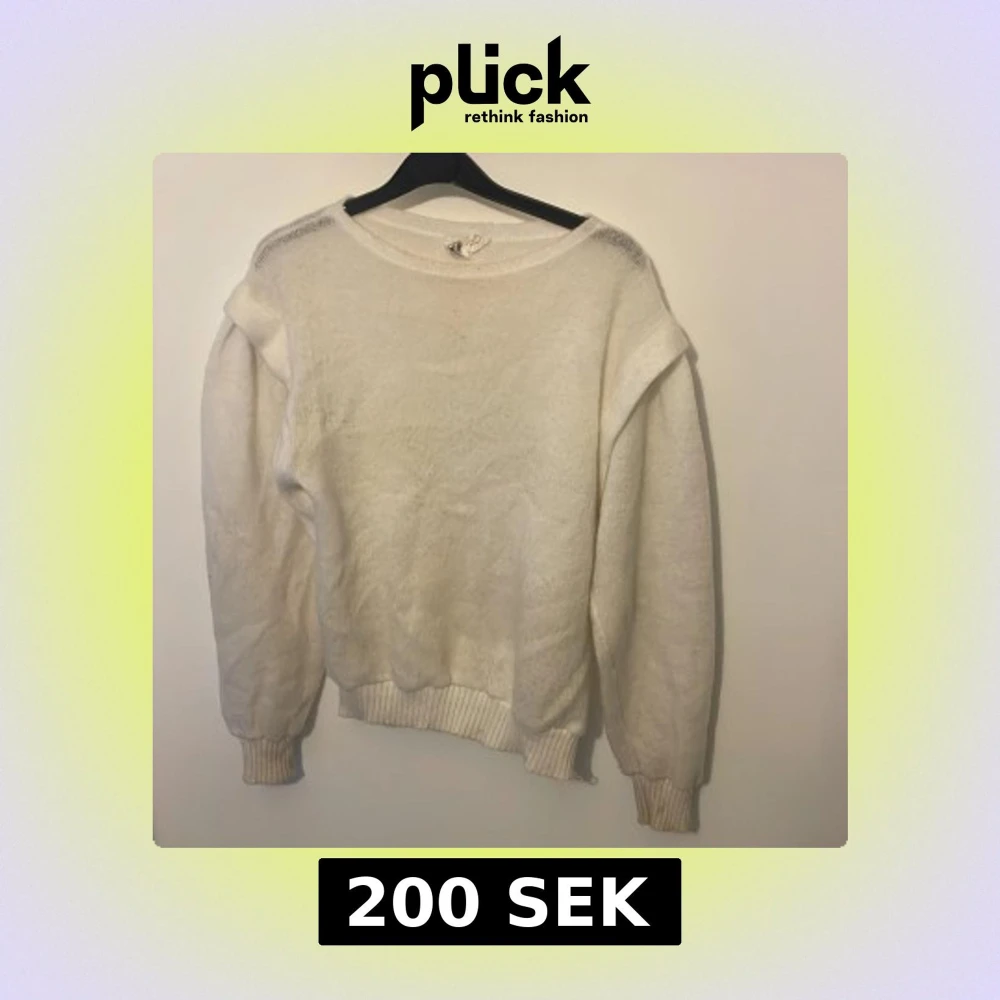 Mysig vit stickad tröja från H&M med rund halsringning och ribbade muddar vid ärmslut och nederkant, tröjan har en lite lös passform.