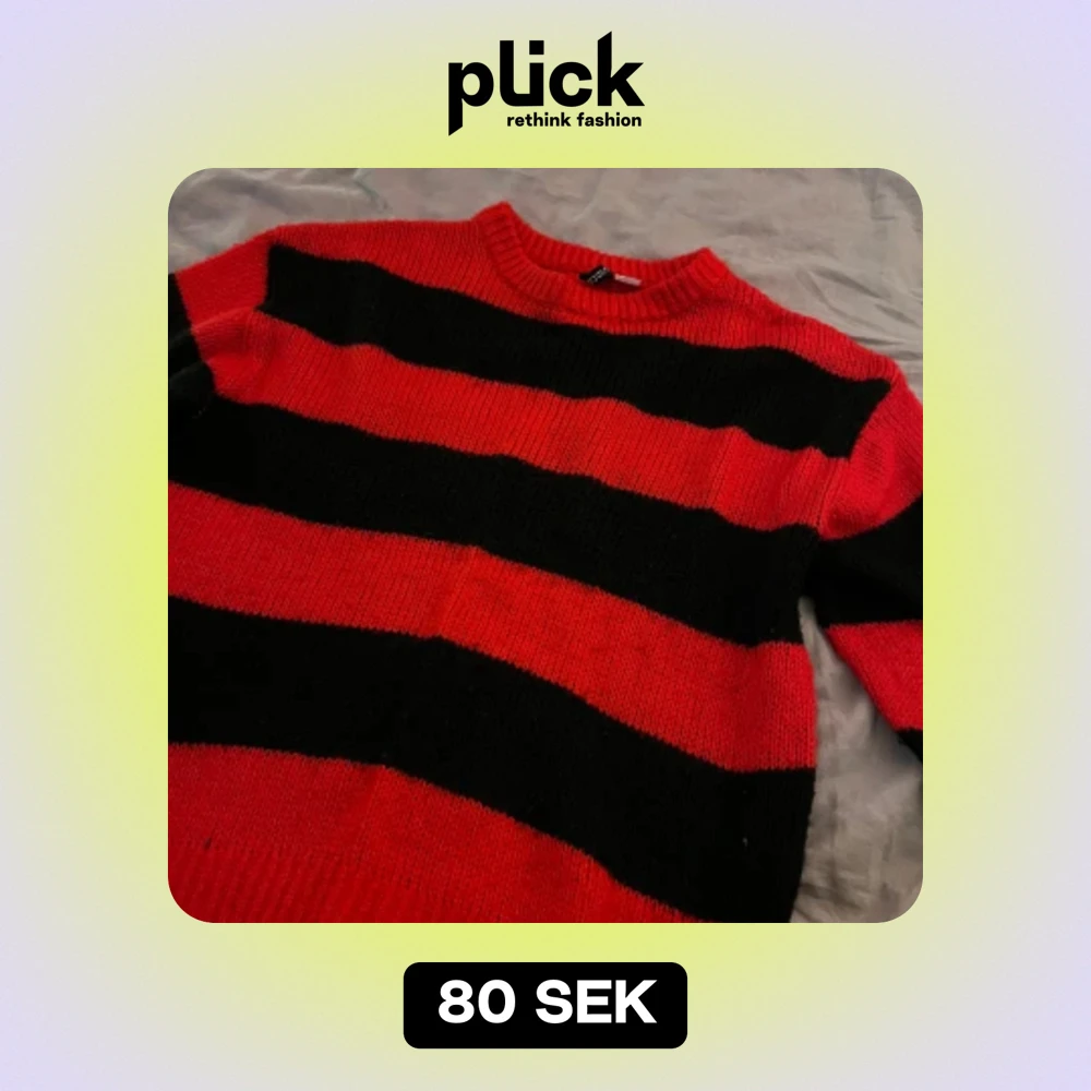 Röd och svart stickad tröja från H&M. Strl M i nyskick.