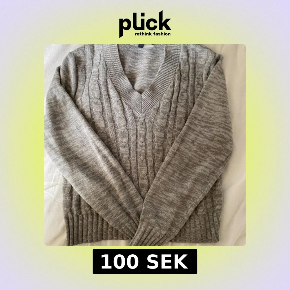 Säljer en grå kabelstickad tröja från H&M Divided i storlek S. Tröjan har v-ringning, långa ärmar och bred ribbad mudd vid ärmslut och nederkant. Perfekt för lager-på-lager och chill höst- eller vinterstil.