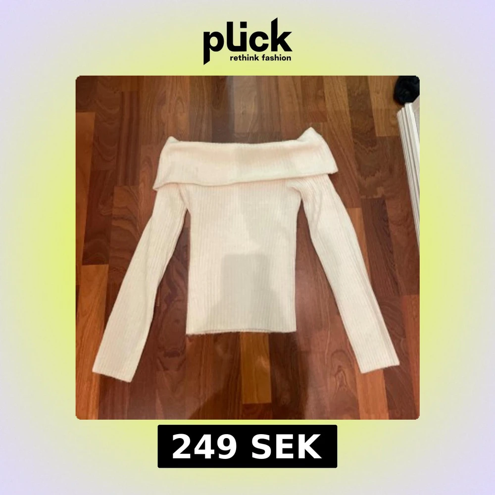Superfin offshoulder tröja från H&M i ljus beige färg. Tröjan är ribbad och har lång ärm, perfekt för dig som gillar en stilren och trendig look. Materialet är mjukt och stickat, vilket gör den skön att bära. Passar dig som vill ha något snyggt och enkelt.
