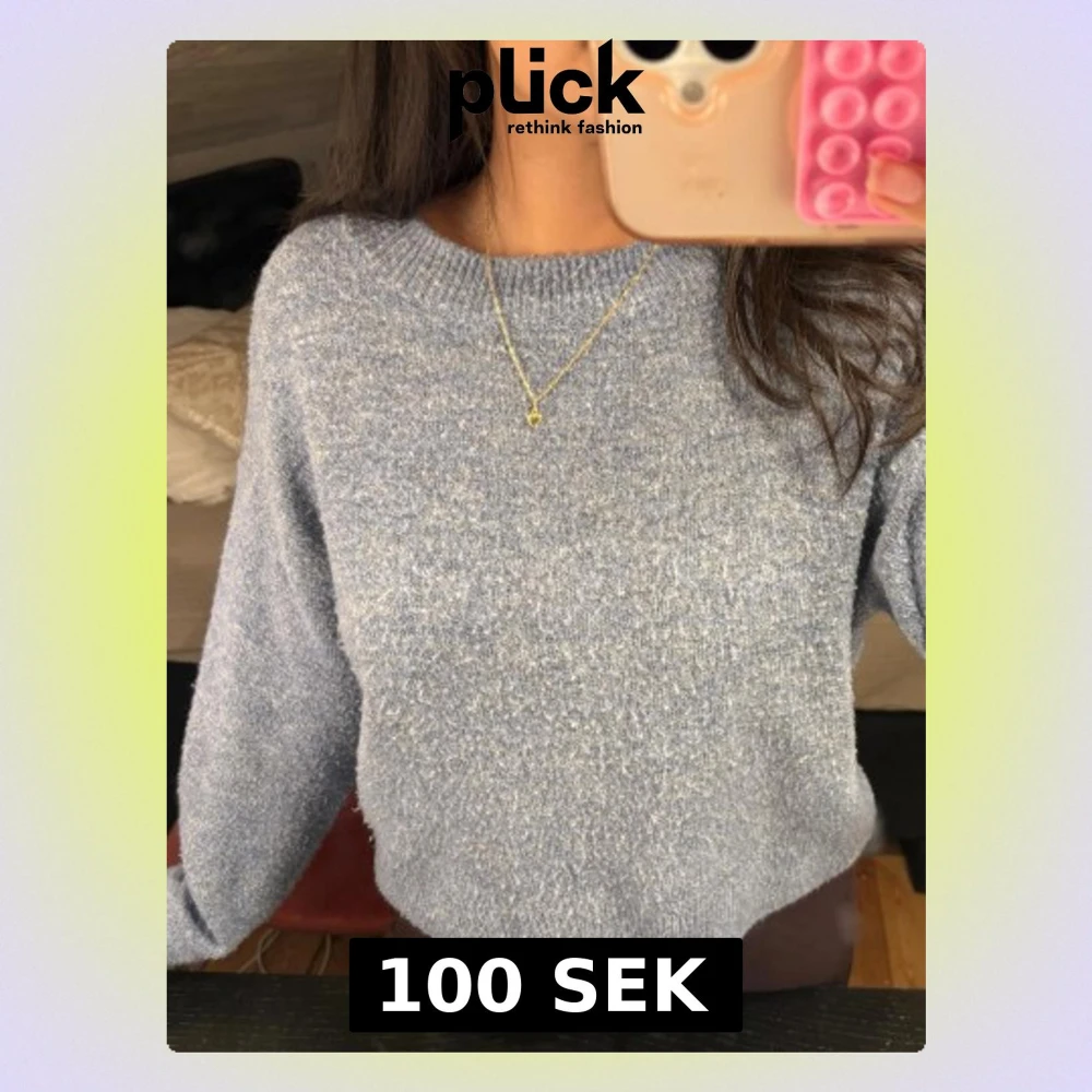 Mysig ljusblå stickad tröja med rund halsringning och lång ärm. Perfekt för kyliga dagar och enkel att matcha med både jeans och kjol. Tröjan har en avslappnad passform och mjukt material som känns skönt mot huden.