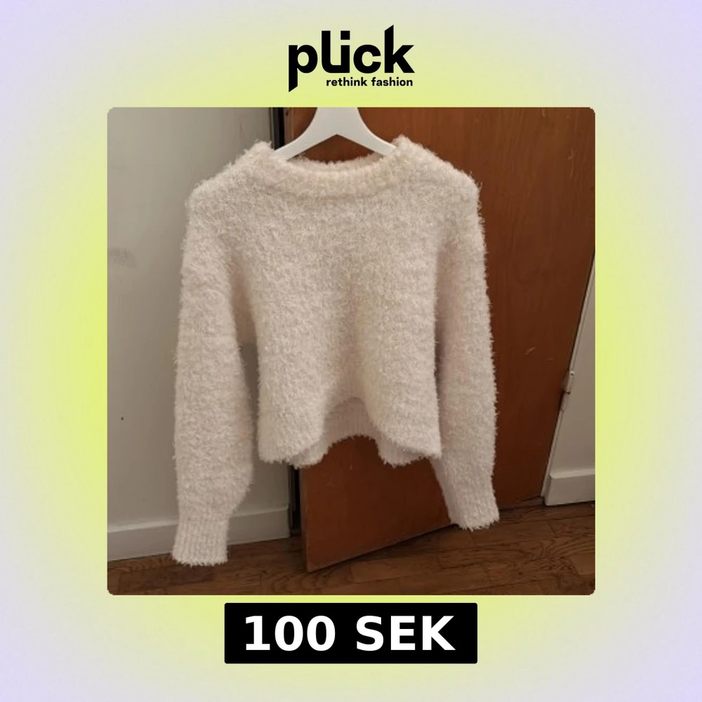 Supermjuk och fluffig vit stickad tröja med lång ärm och rund hals. Perfekt för kyliga dagar när du vill vara både varm och snygg. Tröjan har en lätt oversized passform och ribbade muddar vid ärmslut och nederkant.