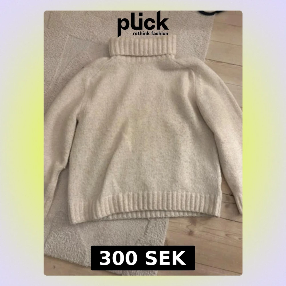 Mysig beige polotröja från H&M i stickad ullmix. Tröjan har ribbade muddar vid ärmslut och nederkant samt en hög, bred polokrage. Perfekt för kyliga dagar och enkel att styla med jeans eller kjol.
