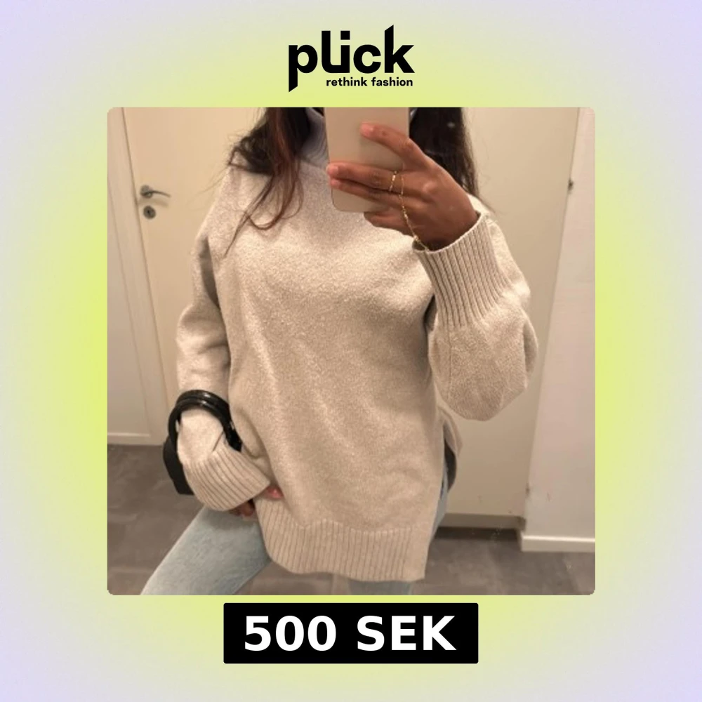 Oversized beige polotröja i stickad ull. Tröjan har höga ribbade muddar, slits i sidorna och en polokrage 🍂😍