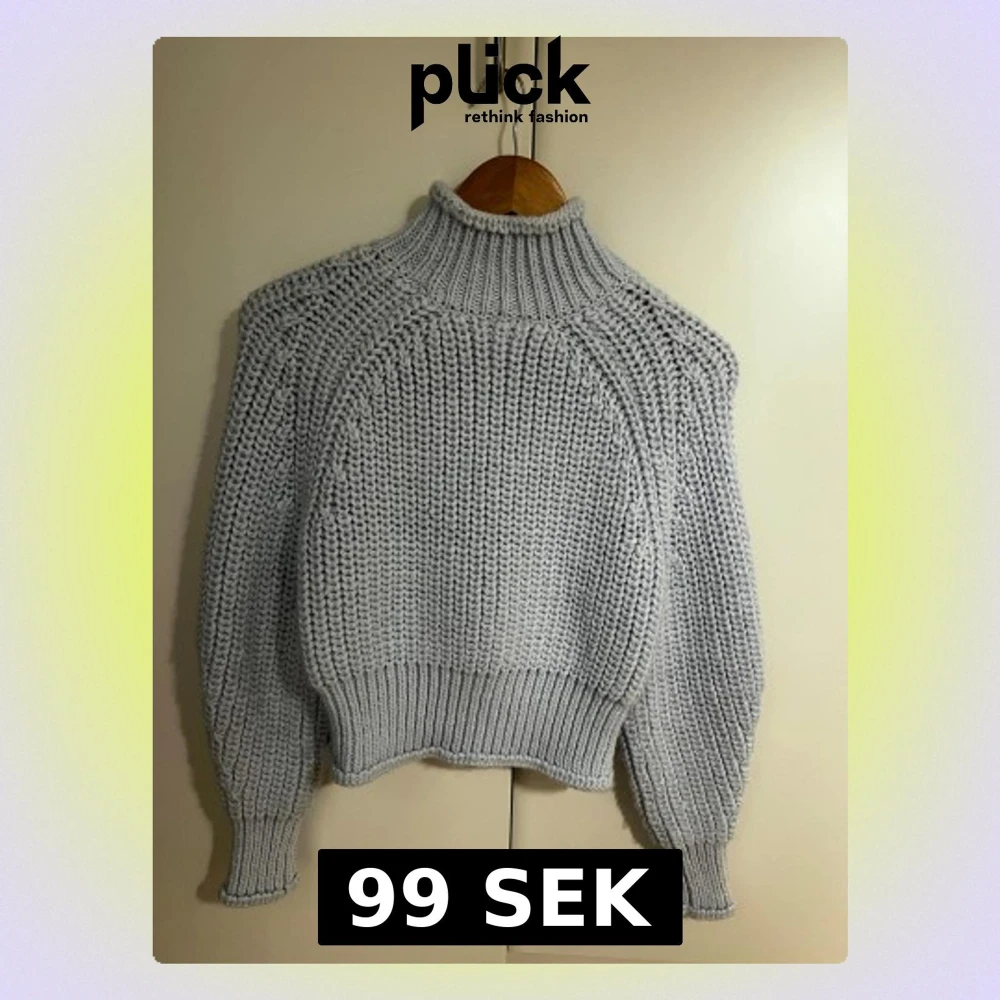 Chunky stickad polotröja i ljusblå med breda ribbade muddar och hög krage. Tröjan har en loose passform och grovstickad struktur som ger en cool och mysig vibe. Perfekt att slänga på sig när det är kallt ute.