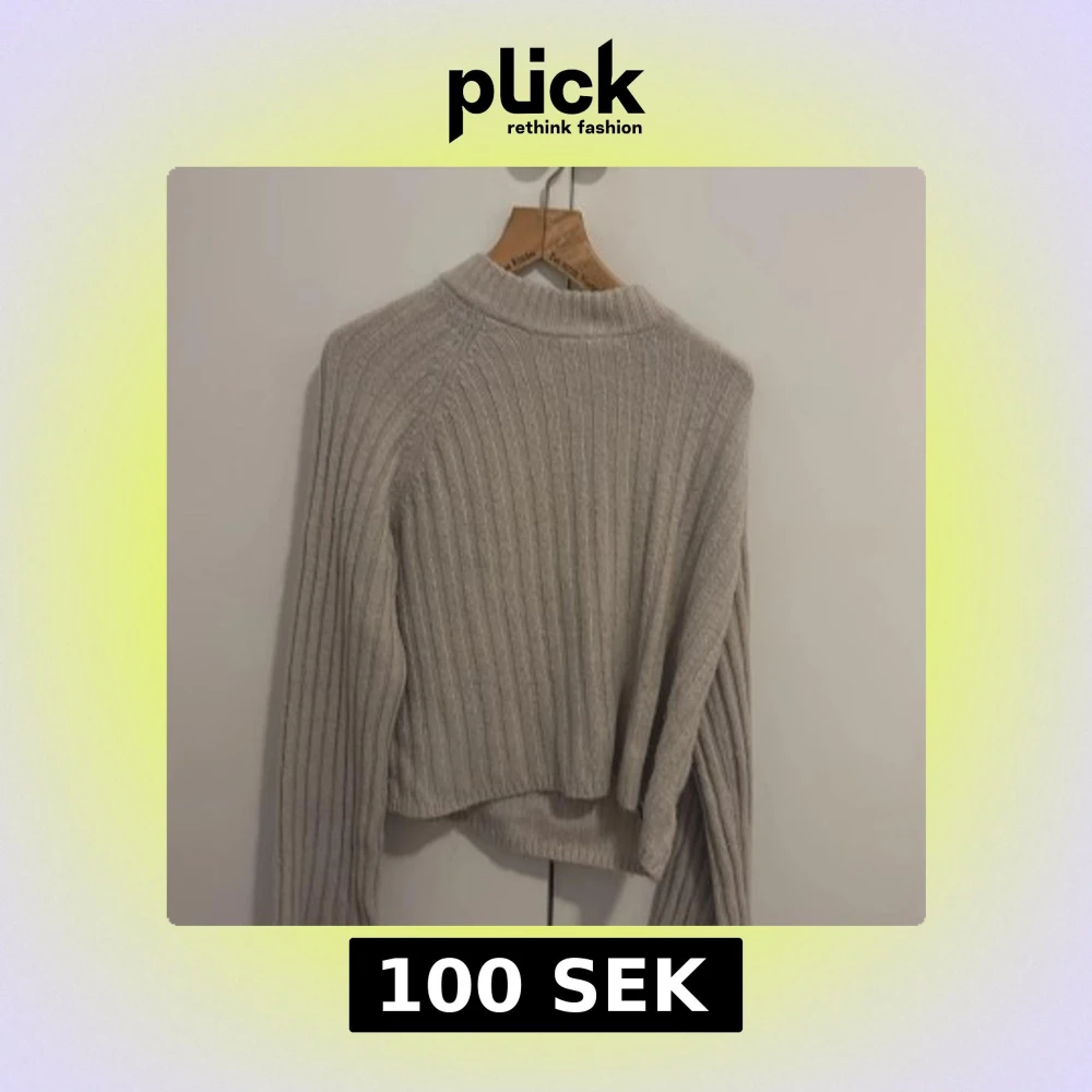 Supermjuk beige stickad tröja från H&M i storlek S. Tröjan har ribbat mönster, lång ärm och en lite högre krage. Perfekt för lager-på-lager och chill dagar. Enkel att matcha med jeans eller kjol.