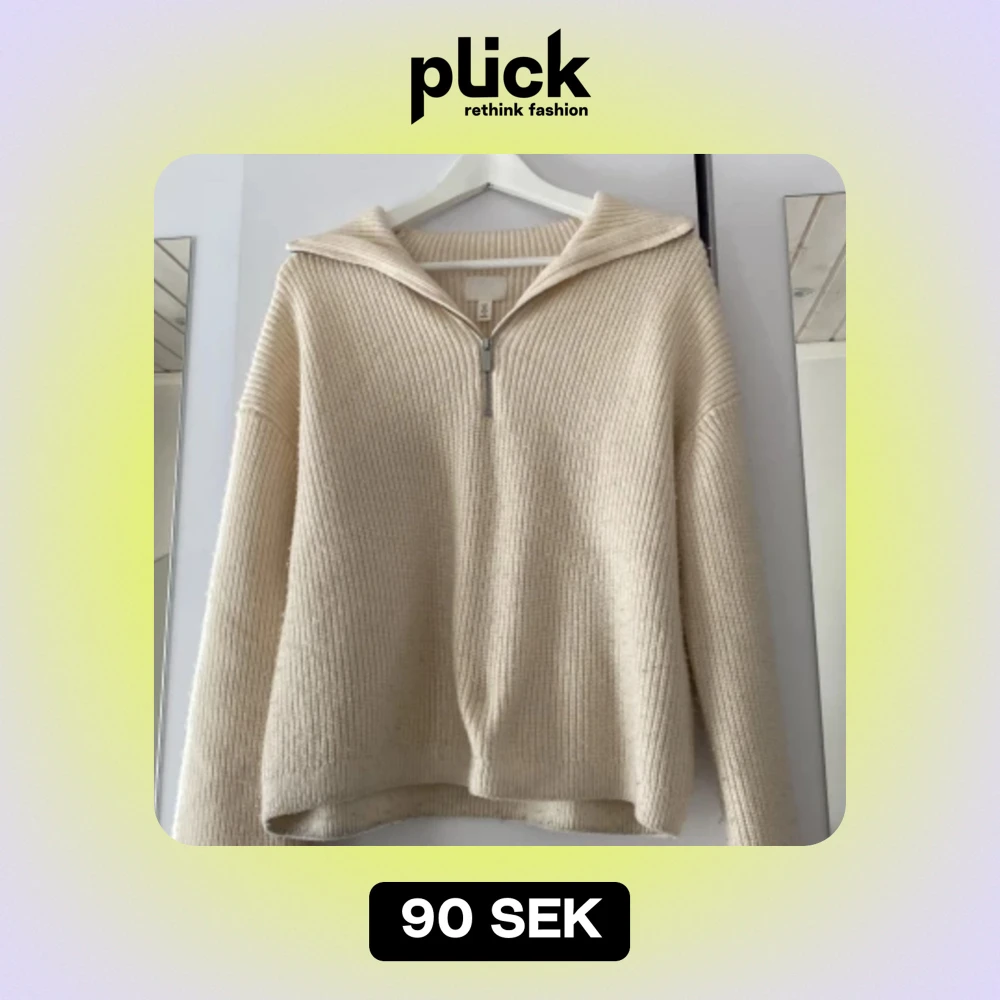 Snygg basic cremevit tröja med halv zip up!! Använd så den har blivit lite nopprig, har även ett hål i sömmen vid ärmen som var från början. Köpt för 299kr säljer för 30kr