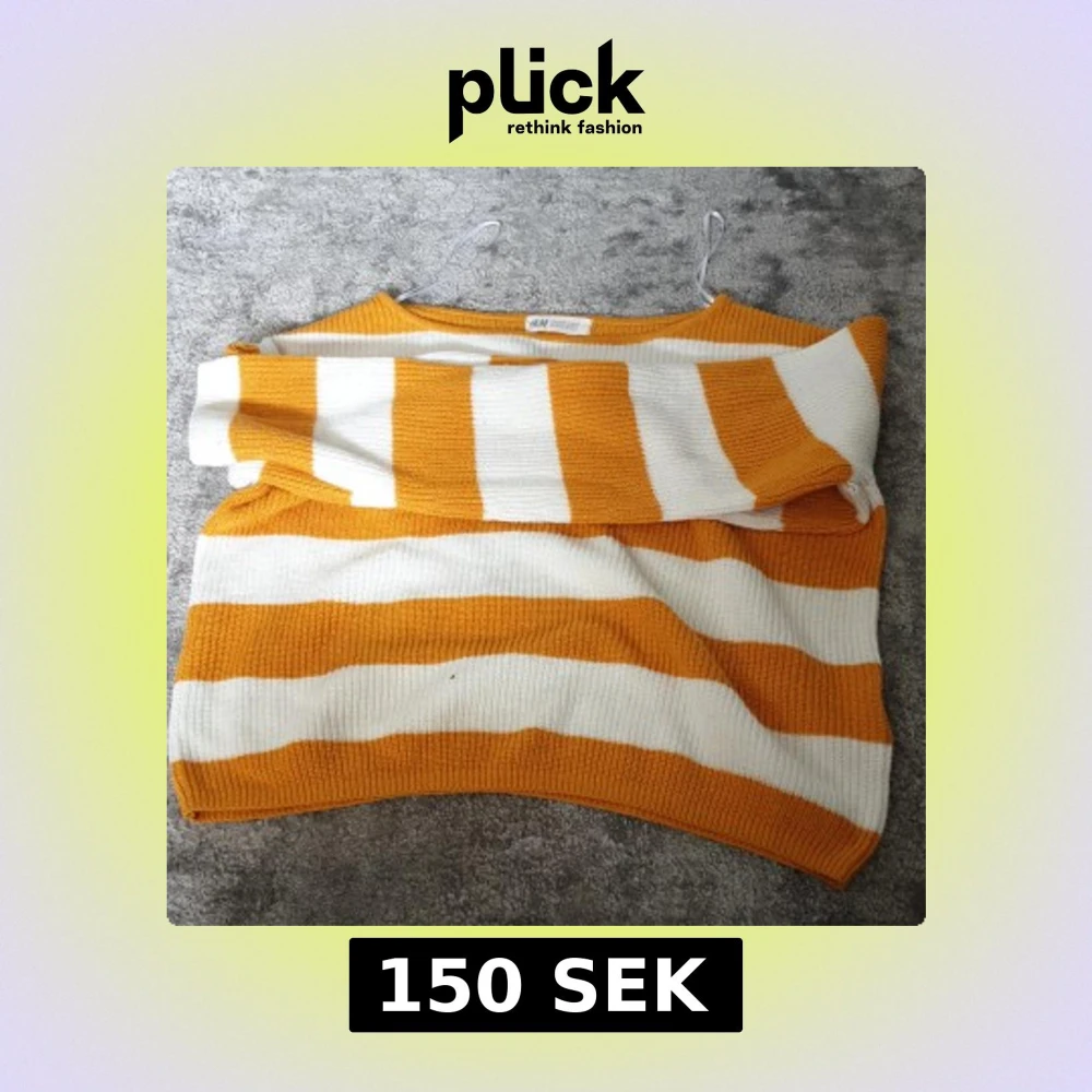 Superfin stickad tröja från H&M med breda gula och vita ränder. Tröjan har en croppad passform, rund halsringning och långa ärmar. Perfekt för dig som gillar färg och vill ha en chill men snygg look.