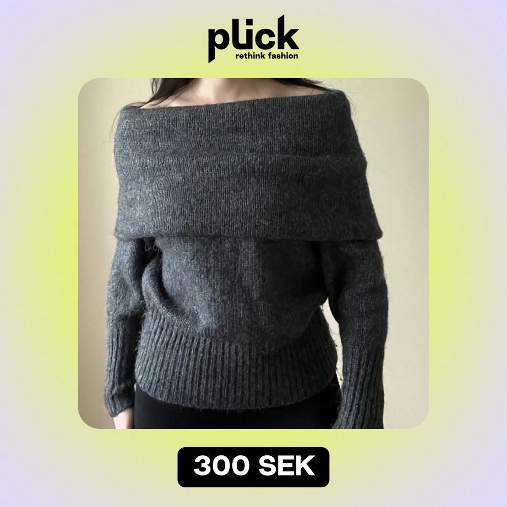 Säljer en superfin mörkgrå stickad tröja med offshoulder-design. Perfekt för kyliga dagar med sin mysiga och stilrena look. Tröjan har långa ärmar och ribbade detaljer vid ärmslut och nederkant. Passar både till vardags och lite finare tillfällen. 🖤