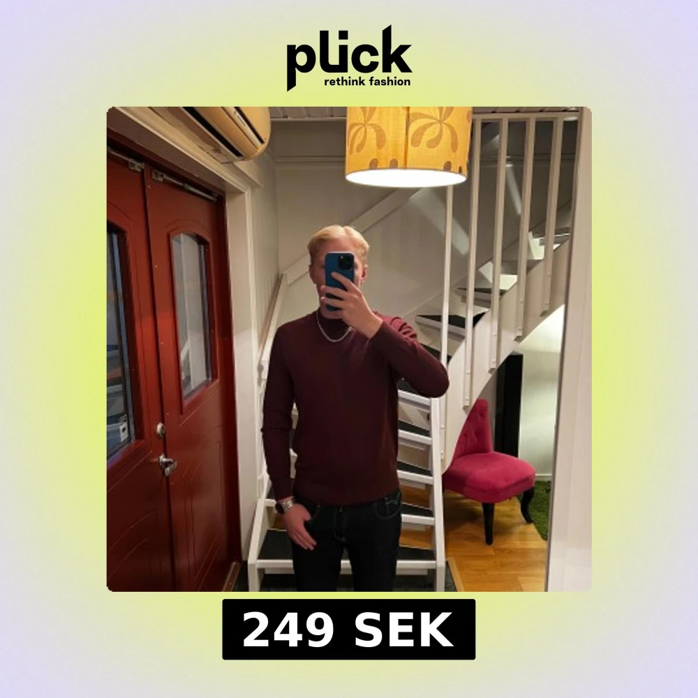 Vinröd stickad tröja från H&M i regular fit. Tröjan har rund halsringning, ribbade muddar och är långärmad. Perfekt för dig som gillar en enkel och stilren look med en djup vinröd färgton.