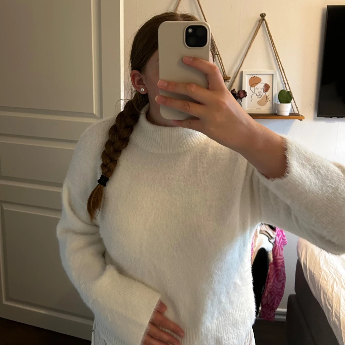 Mjuk vit stickad tröja från hm. Säljer då den inte används💕