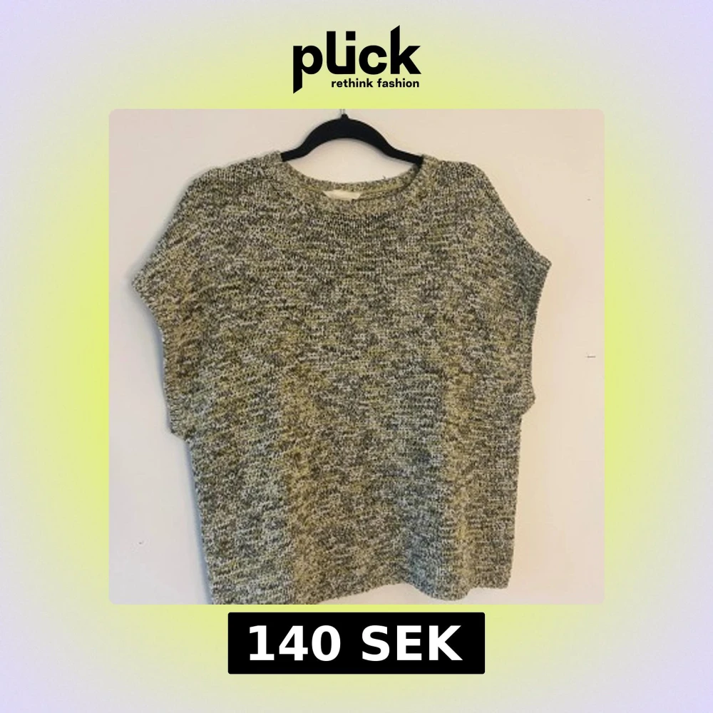En chill stickad tröja med korta ärmar i en mix av grå och ljusgröna toner. Tröjan har en rund halsringning och ett melerat mönster som ger en avslappnad vibe. Perfekt för lager-på-lager och funkar året runt. Materialet är mjukt och stickat för extra komfort.