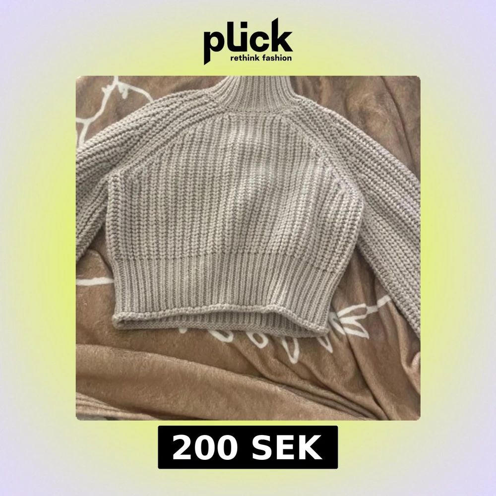 En stickad tröja från h&m som är lite croppad o har en hög krage, ny pris 400kr