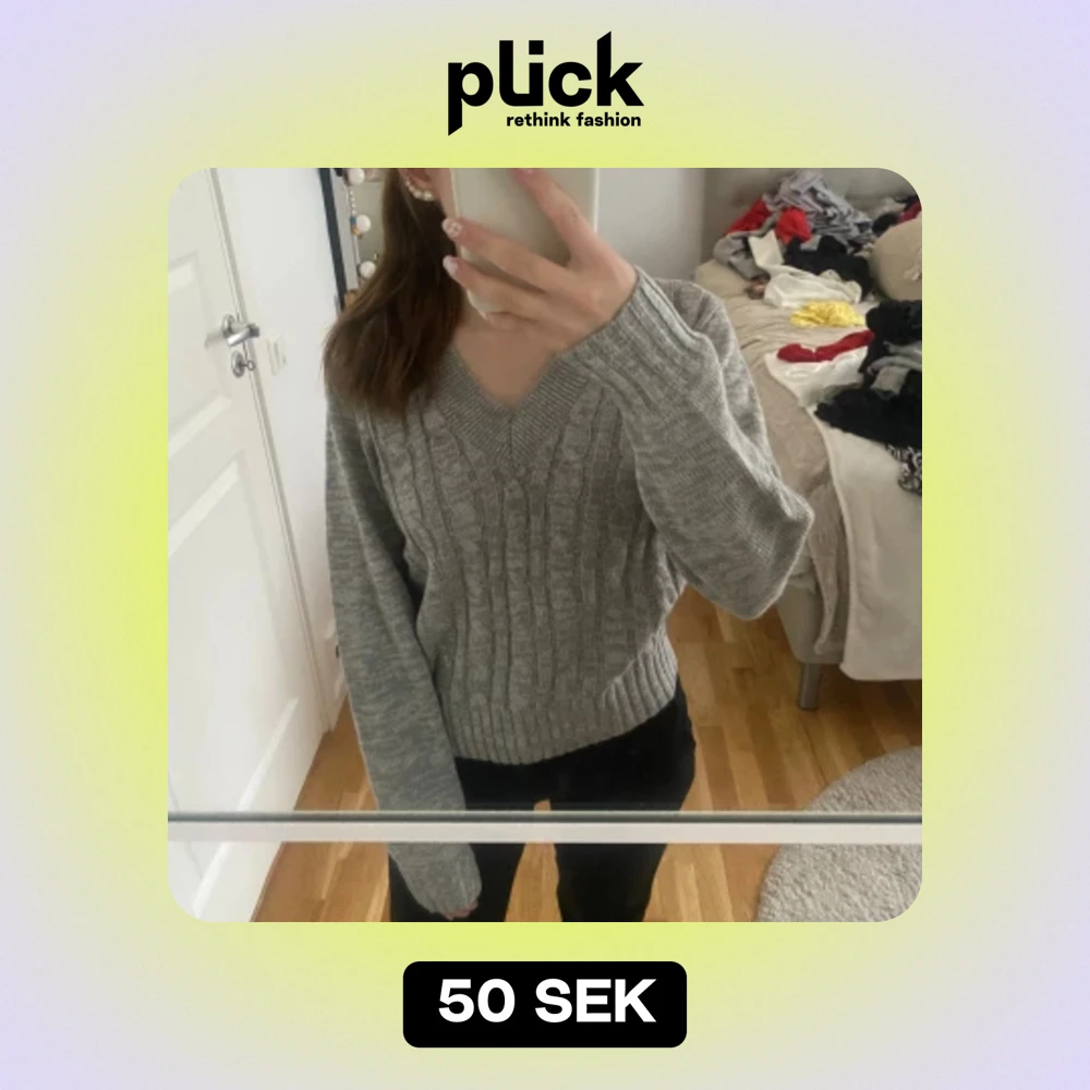 En grå mönstrad stickad tröja, har använt 1 gång så den är som oanvänd, den är super mysig🩶🩶