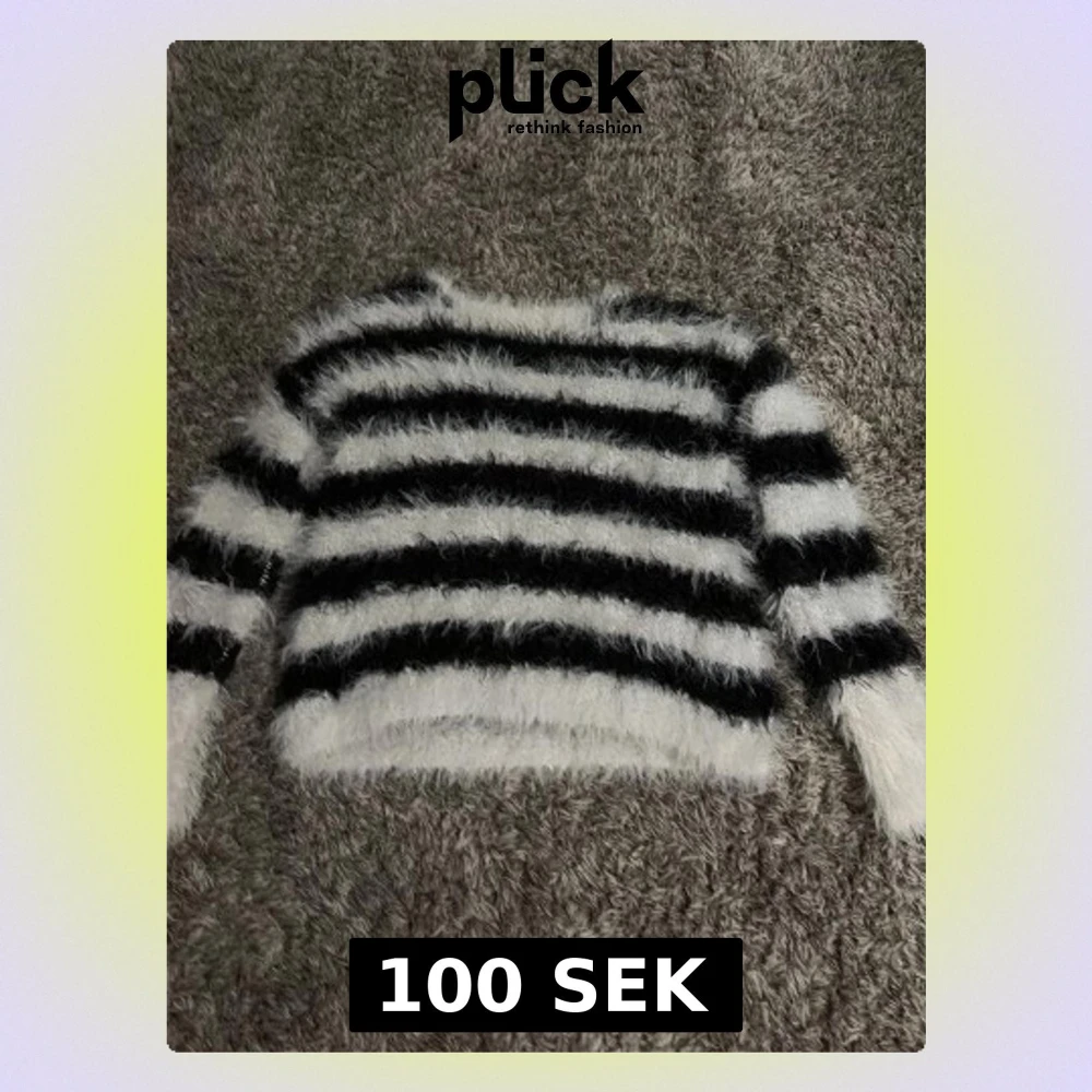 Supermjuk och fluffig tröja från H&M i storlek XS. Svarta och vita breda ränder ger en cool look. Tröjan har lång ärm och är gjord i ett lurvigt material som känns riktigt mysigt. Perfekt för dig som vill ha något både bekvämt och snyggt.💕🤍