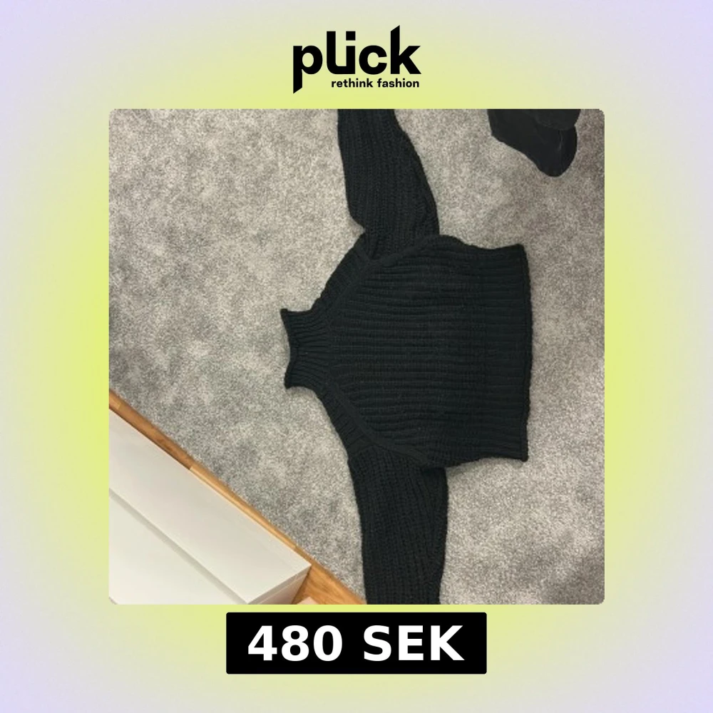 Mysig svart stickad tröja från H&M i storlek XS. Tröjan har en högre hals och grovstickad struktur med långa ärmar. Perfekt för kyliga dagar och enkel att matcha med jeans eller kjol. Varför jag säker är för att den är för liten