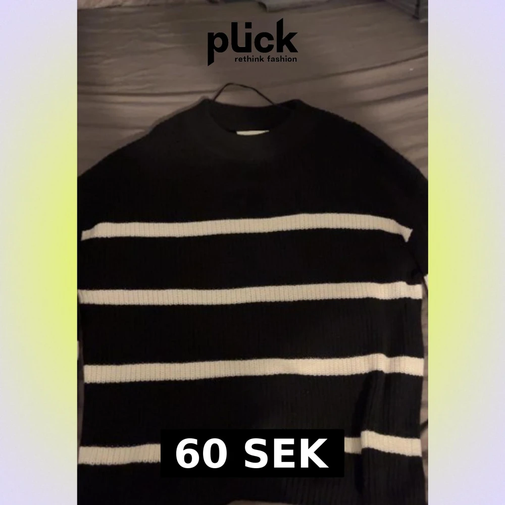 Svart stickad tröja från H&M i storlek XS med breda vita horisontella ränder. Tröjan har rund hals och långa ärmar, perfekt för dig som gillar klassisk och chill stil. Materialet är mjukt och ribbat, vilket gör den extra skön att bära.